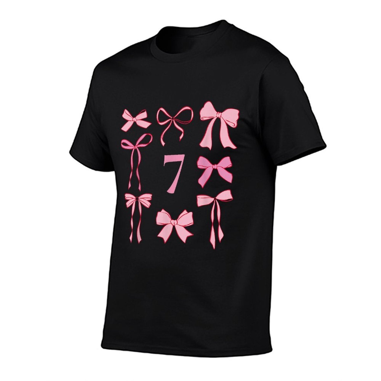 Hello Seven Coquette Preppy Pink Bow 7th Birthday Girl High-quality Stitching T-Shirt