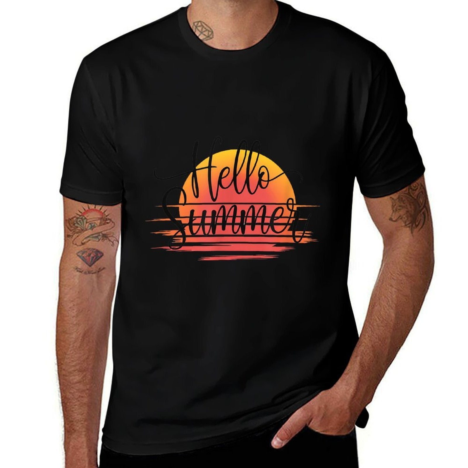 - Avoid bleach to preserve the Hello Summer Welcome Summertime Sunset Vacation Men Women T-shirt’s bold graphics and cotton integrity.