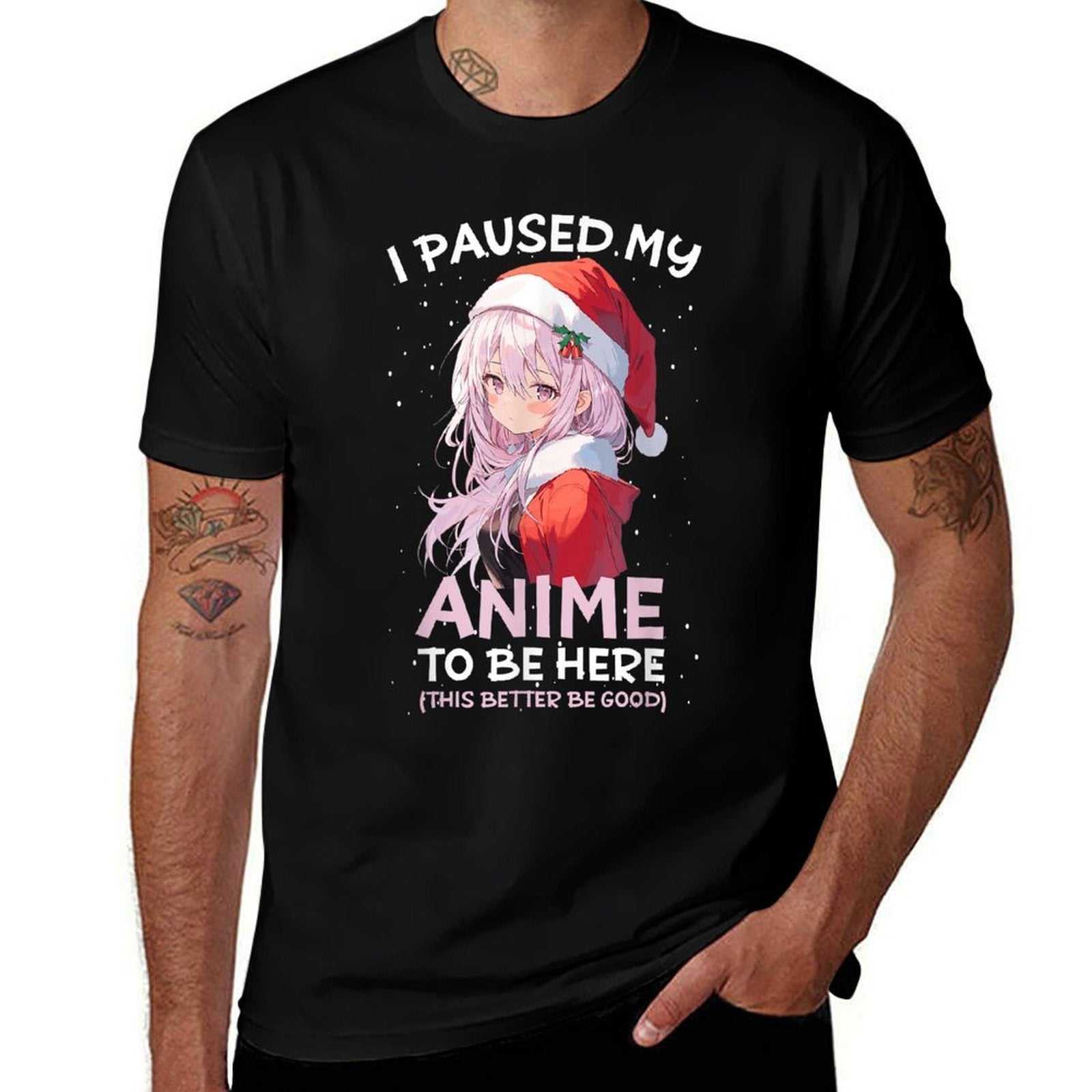 - Avoid bleach to preserve the I Paused My Anime To Be Here Anime Girl Santa Hat Otaku T-shirt’s bold graphics and cotton integrity.