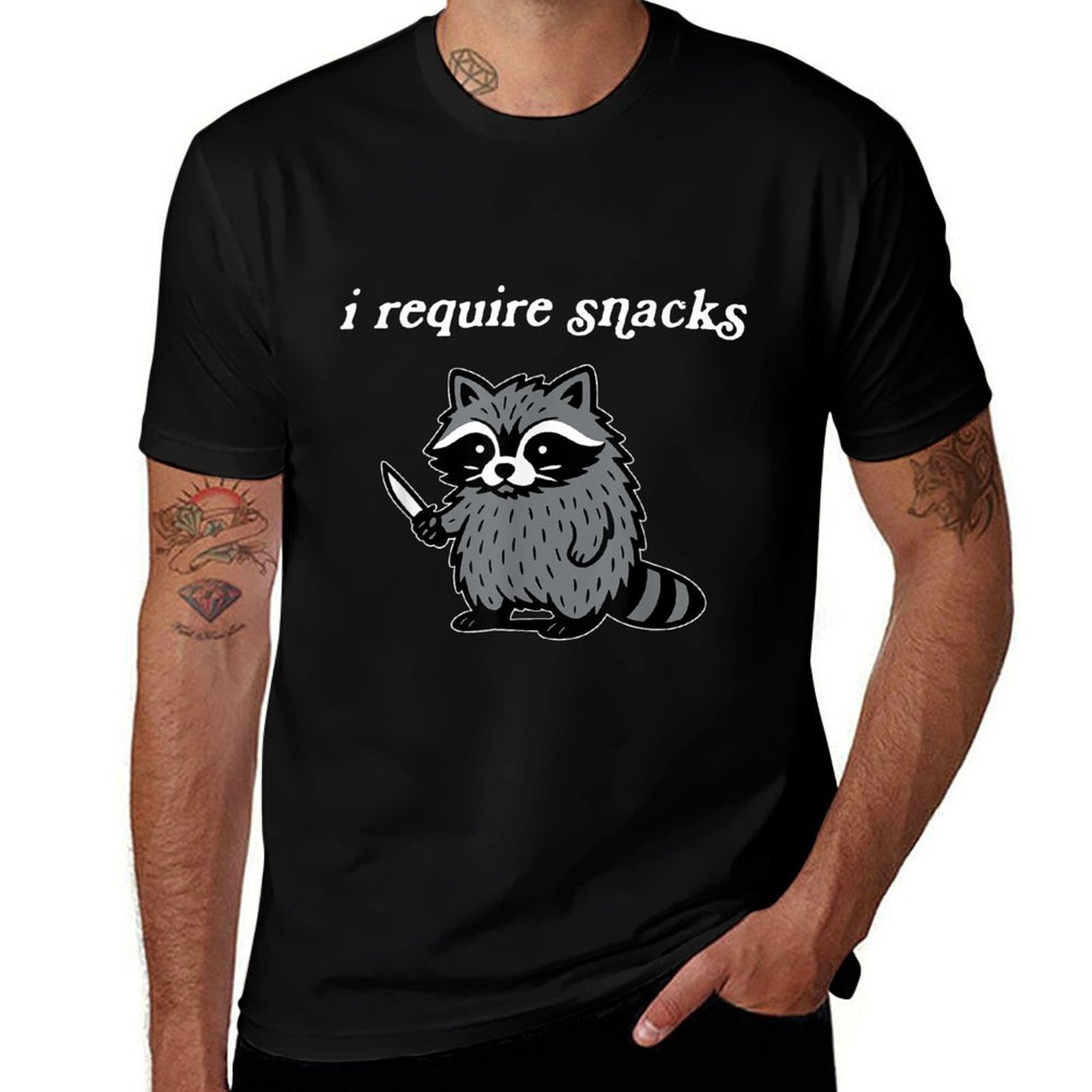 - Care Reminder: Skip soaking and bleach to extend your I Require Snacks Funny Raccoon Retro Raccoon Meme tee’s lifespan.