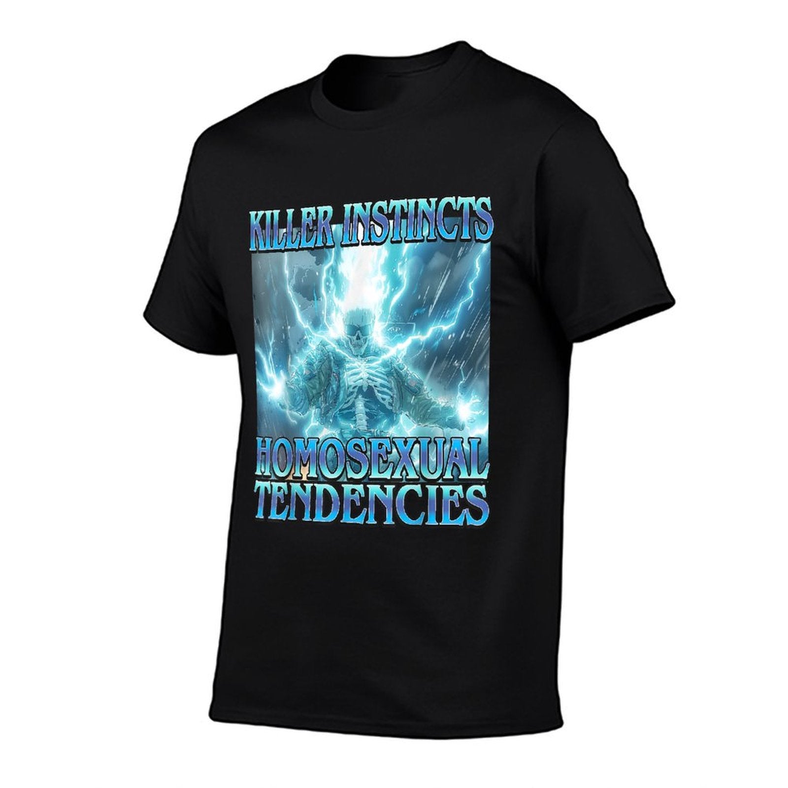 - Avoid bleach to preserve the Killer Instincts Homosexual Tendencies - Funny Skeleton Meme T-shirt’s bold graphics and cotton integrity.