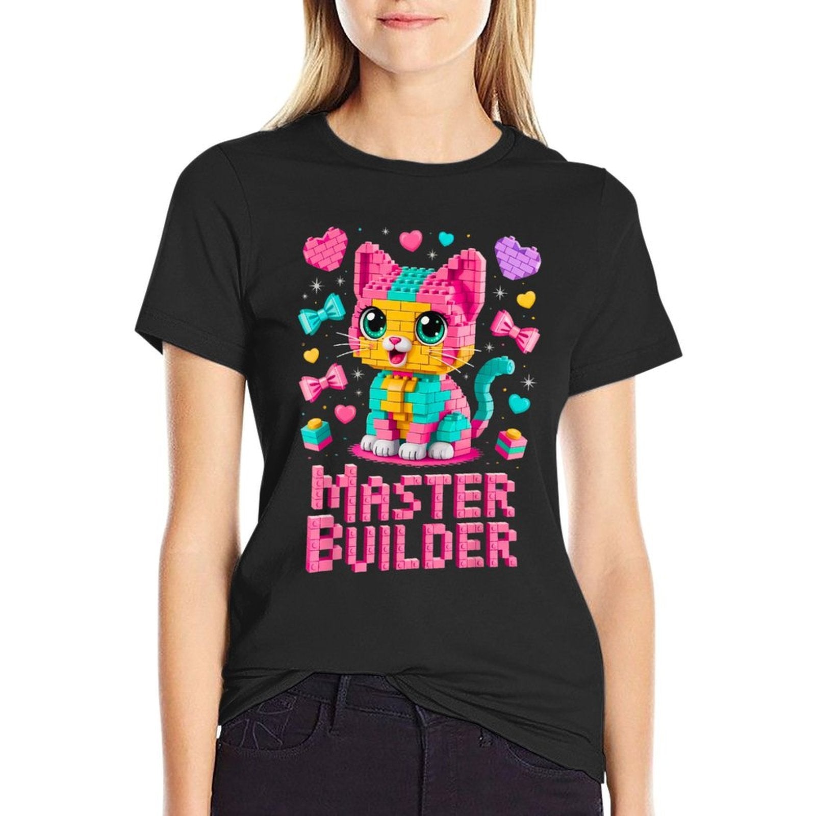 Master Builder Cat Lover Building Bricks Blocks Kids Girls Wrinkle-resistant T-Shirt