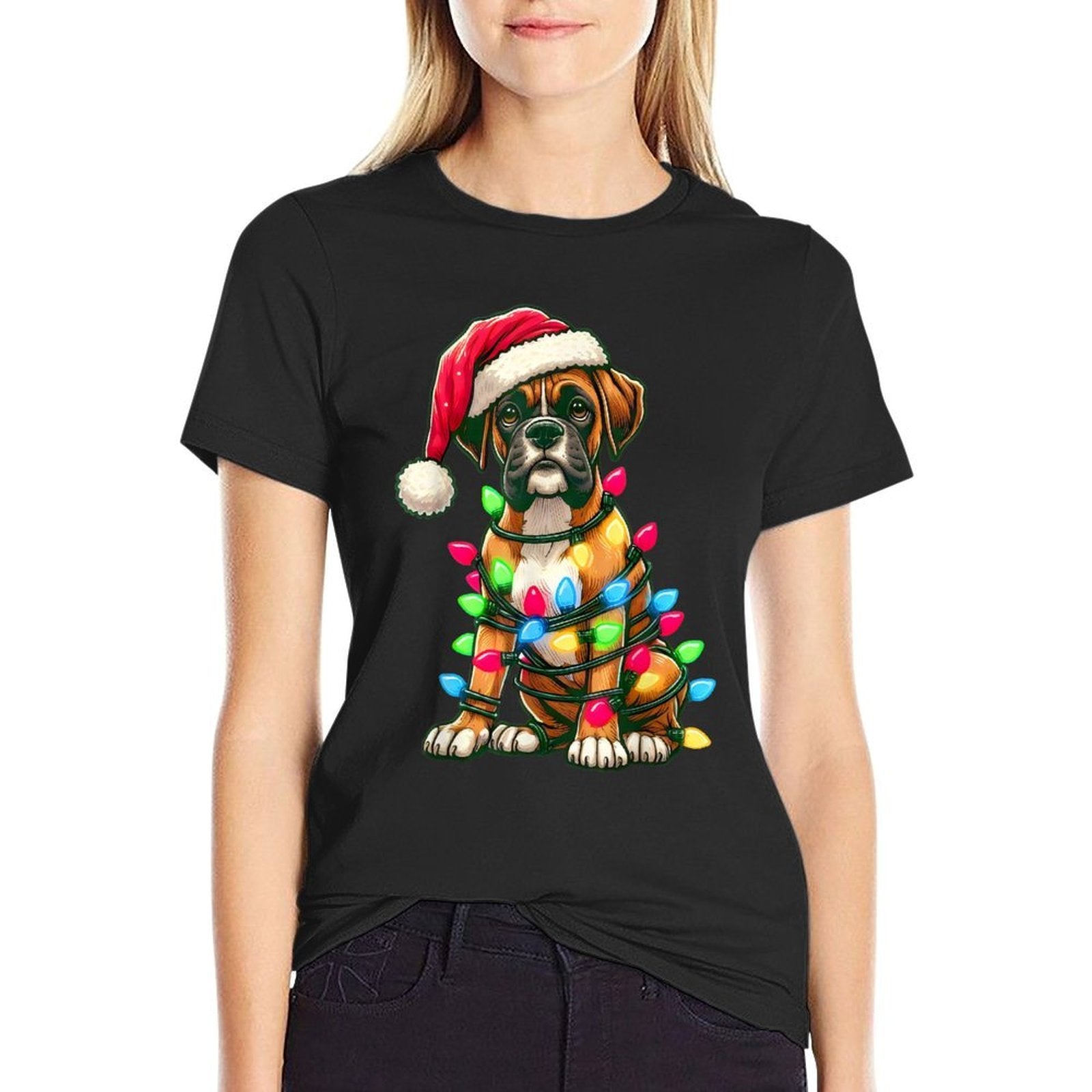 - Heat-transfer prints retain vibrant colors wash after wash, perfect for Merry Christmas Boxer Santa Christmas Lights Dog Xmas Tree casual outfits or statement streetwear.