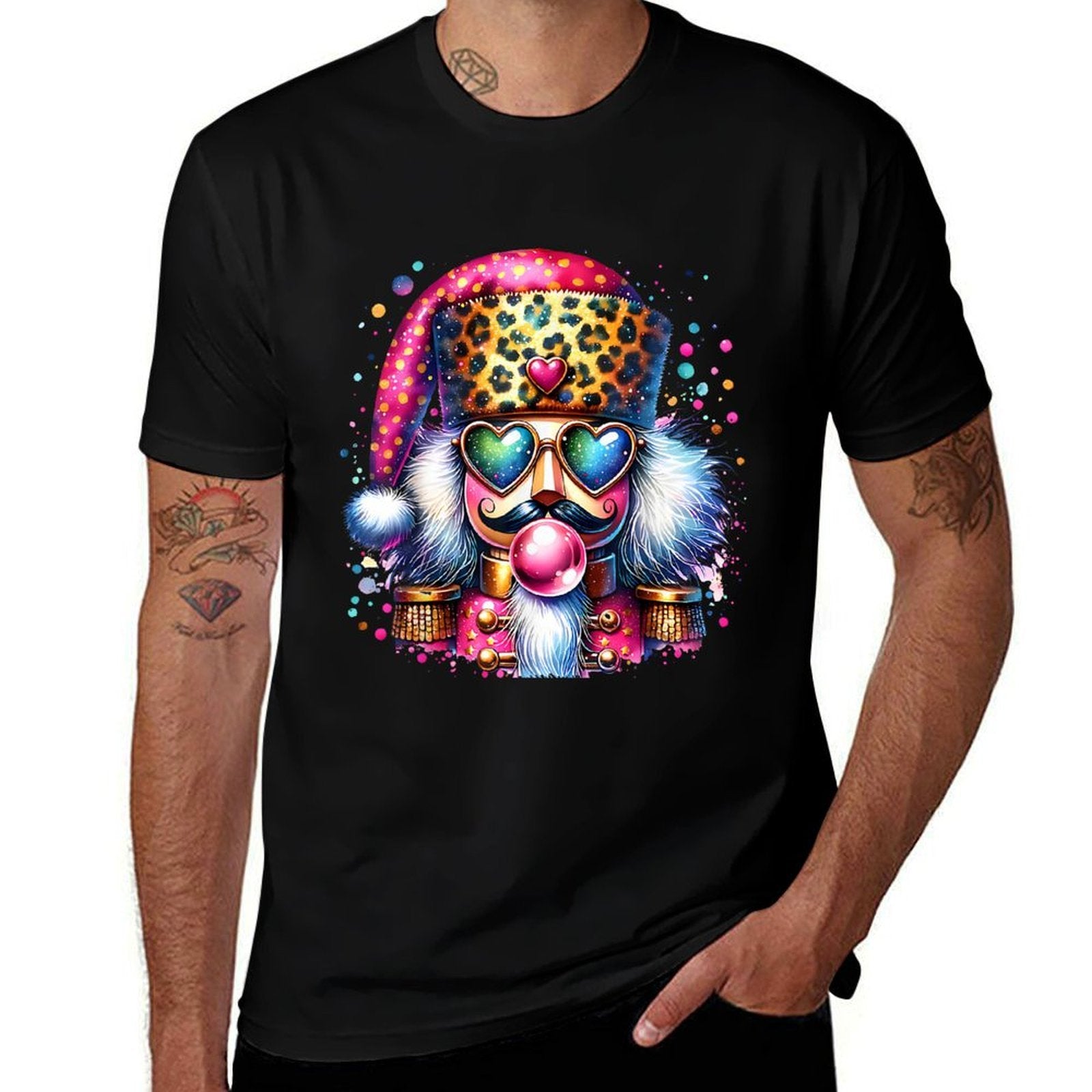 Nutcracker Blowing Bubble Gum Pink Sunglasses Christmas Comfortable T-Shirt