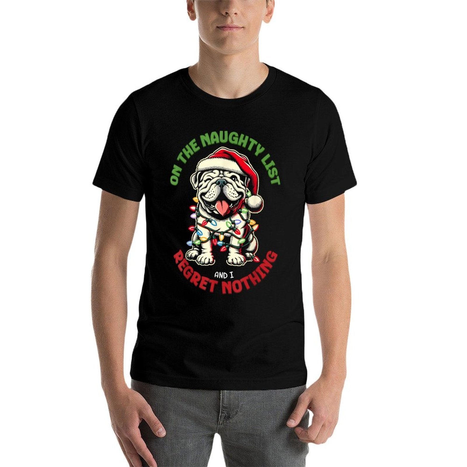 On The Naughty List And I Regret Nothing Bulldog Christmas Durable T-Shirt