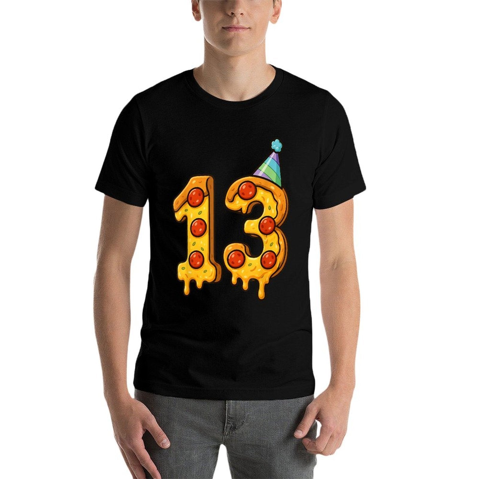 Pizza 13th Birthday 13 Years Old Party Hat Bday Boy Girl Kid  High-quality Stitching T-Shirt