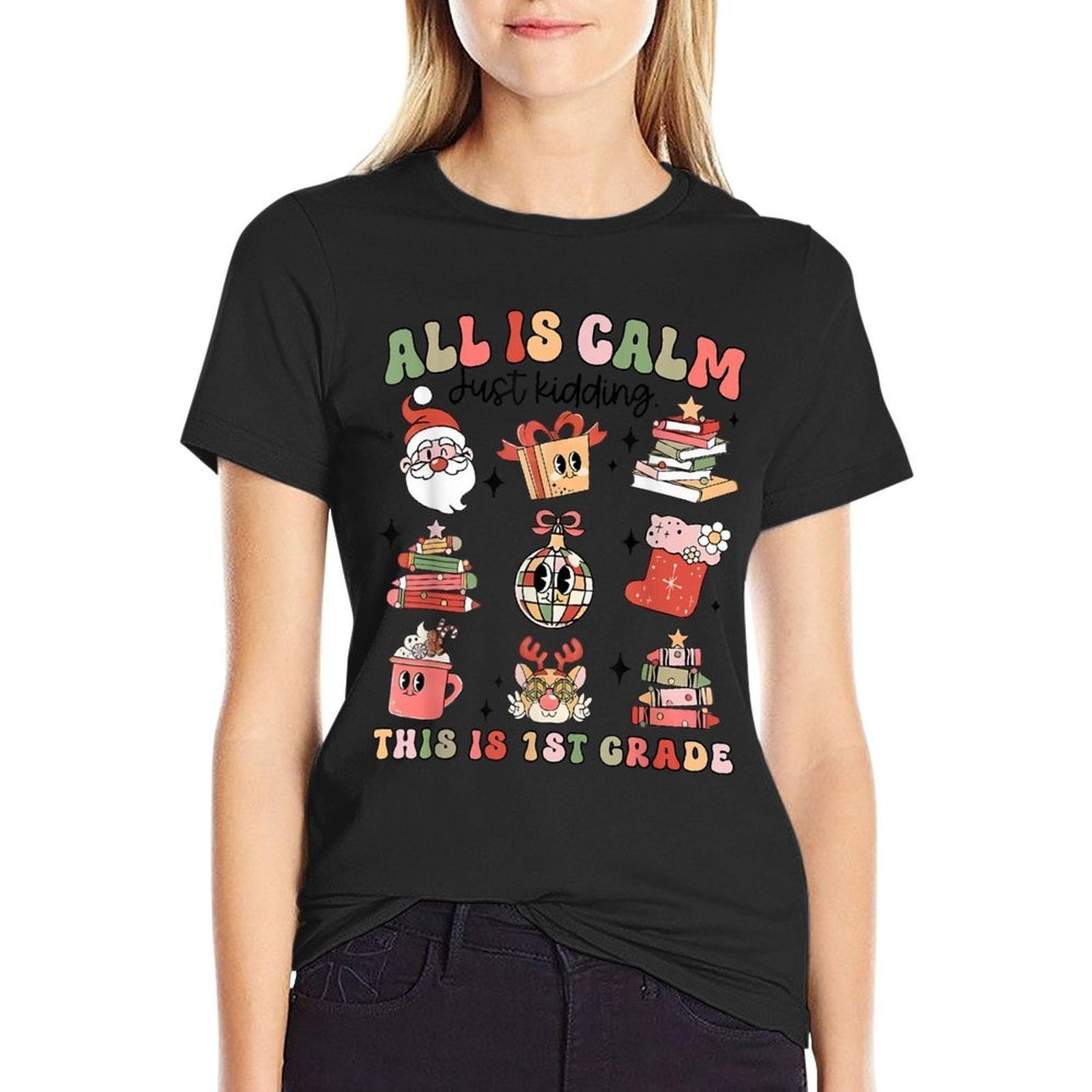 Why Choose Retro First Grade Teacher Christmas All Is Calm Disco Ball T-Shirt?