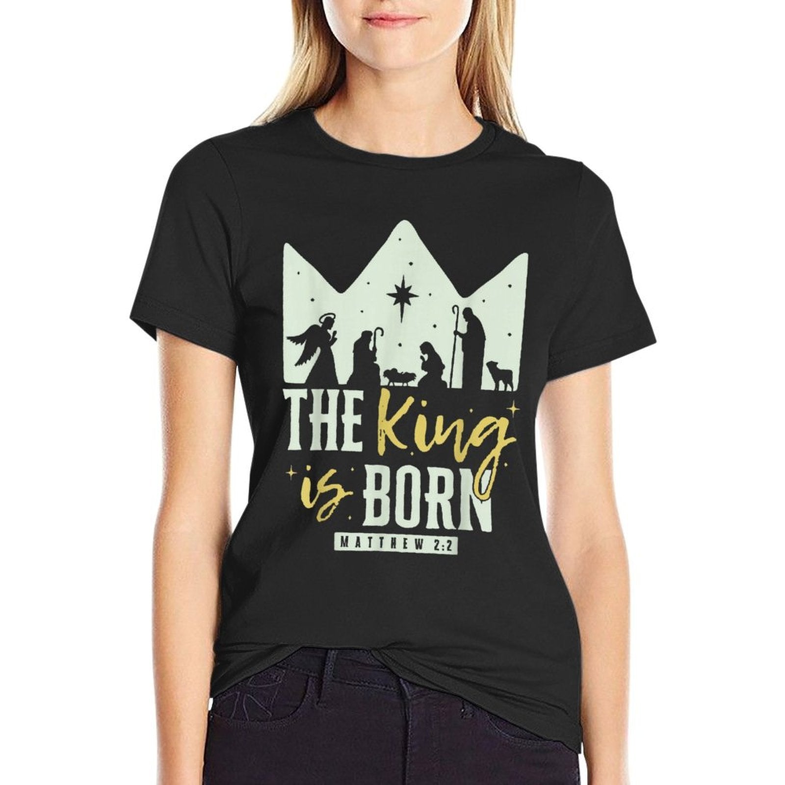 - Avoid bleach to preserve the Retro Religious Christmas The King Is Born Christian T-shirt’s bold graphics and cotton integrity.