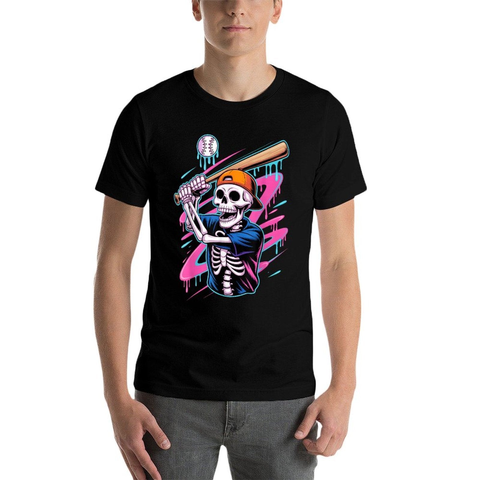 Skeleton Baseball Drip Boy Youth Dripping Baseball Halloween Oversized Silhouette T-Shirt