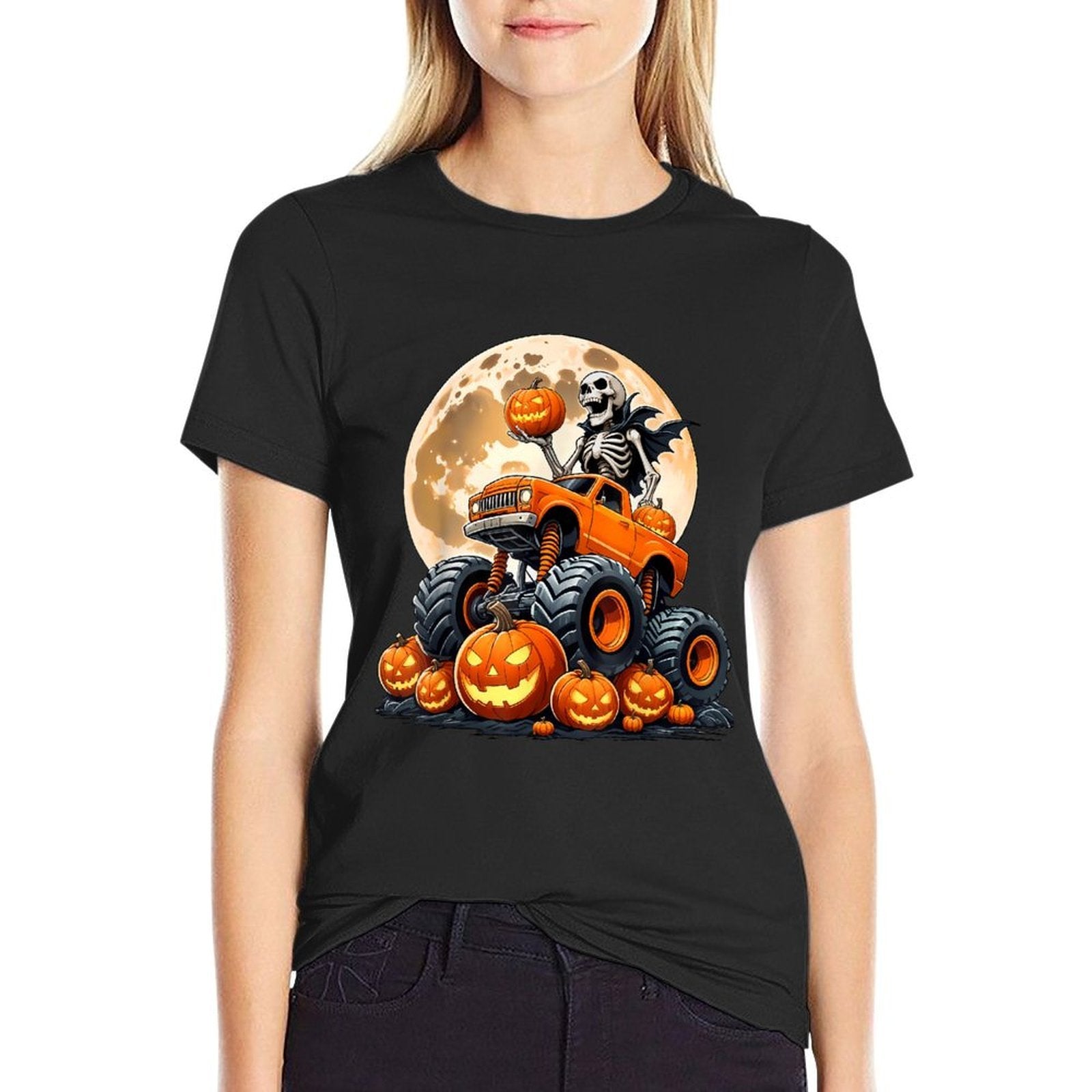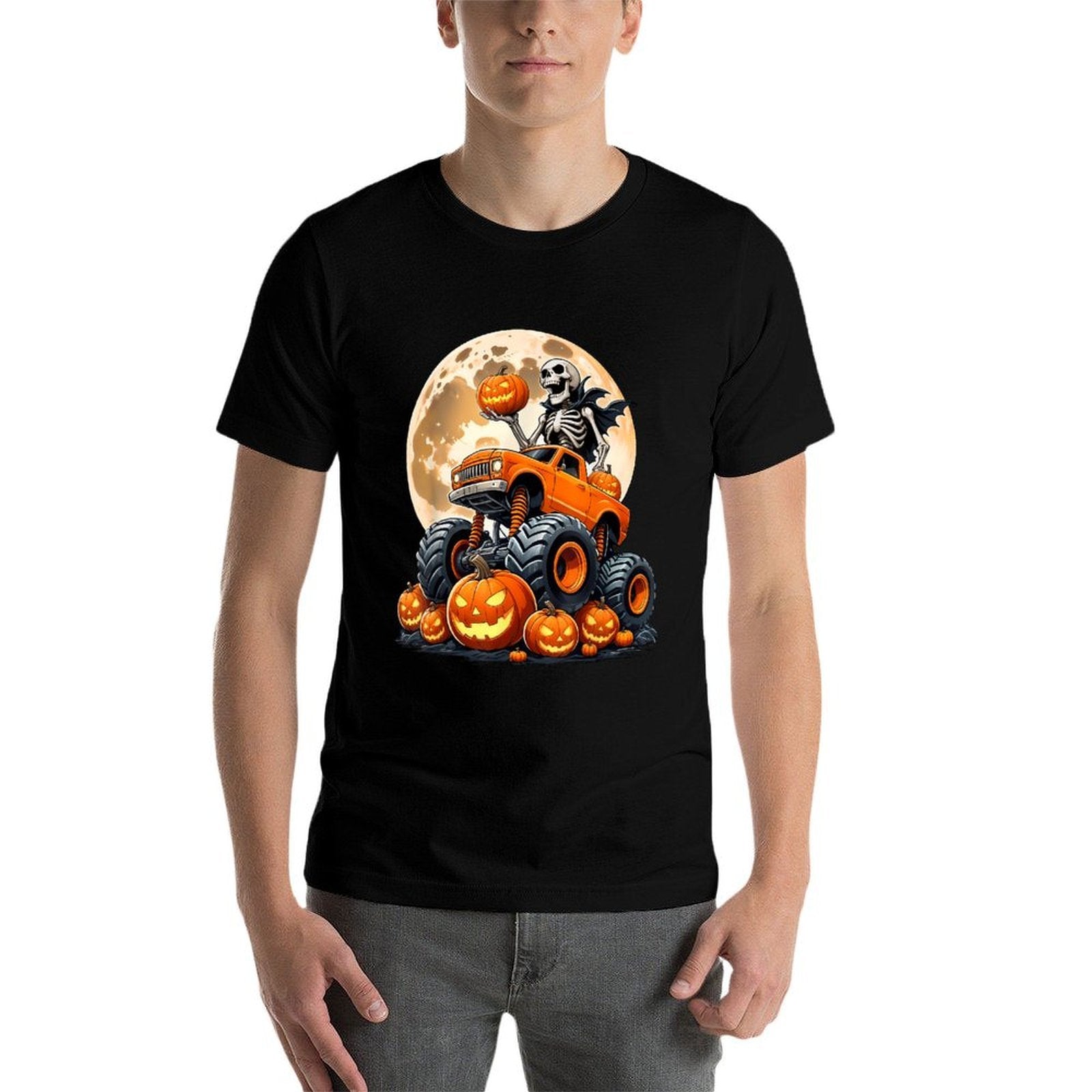 - Durable construction withstands frequent wears, ideal for active Skeleton Riding Monster Truck Halloween Pumpkin Kids Toddler lifestyles.