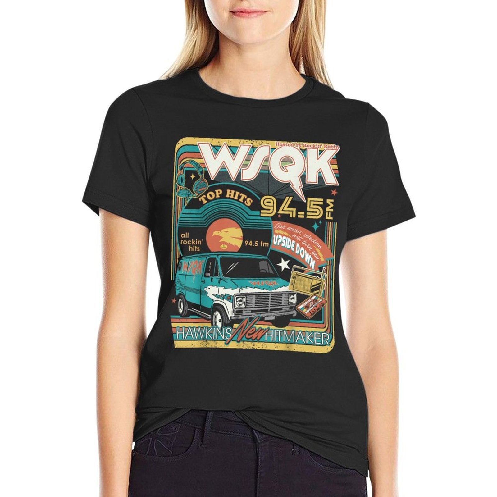 • Avoid bleach to preserve the Stranger Things Season 5 WSQK Hawkins New Hitmaker Retro T-shirt’s bold graphics and cotton integrity.