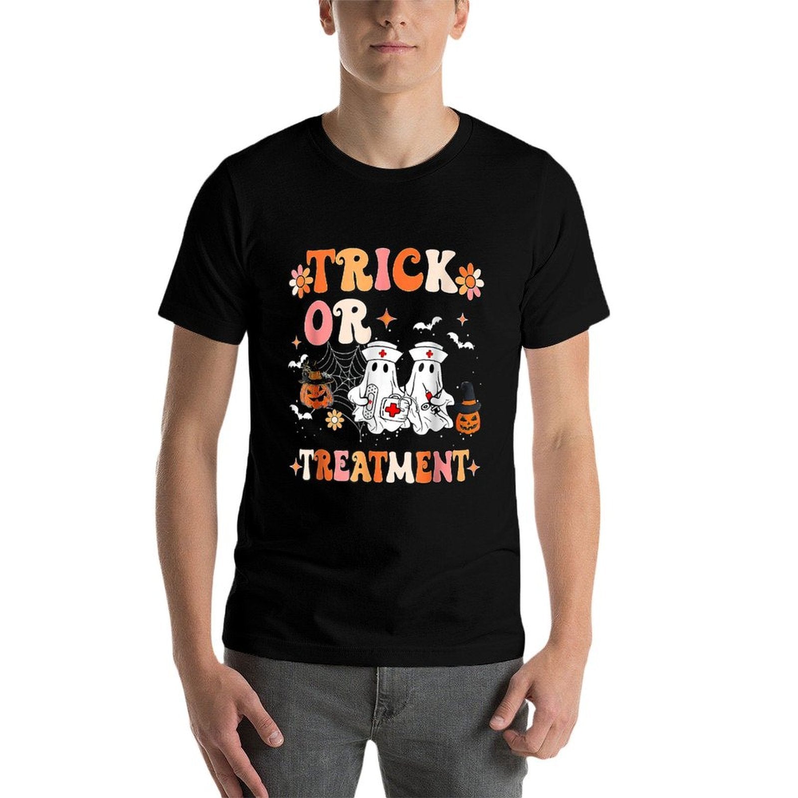 • Care Reminder: Skip soaking and bleach to extend your Trick Or Treatment Ghost Paramedic Halloween Nurse tee’s lifespan.