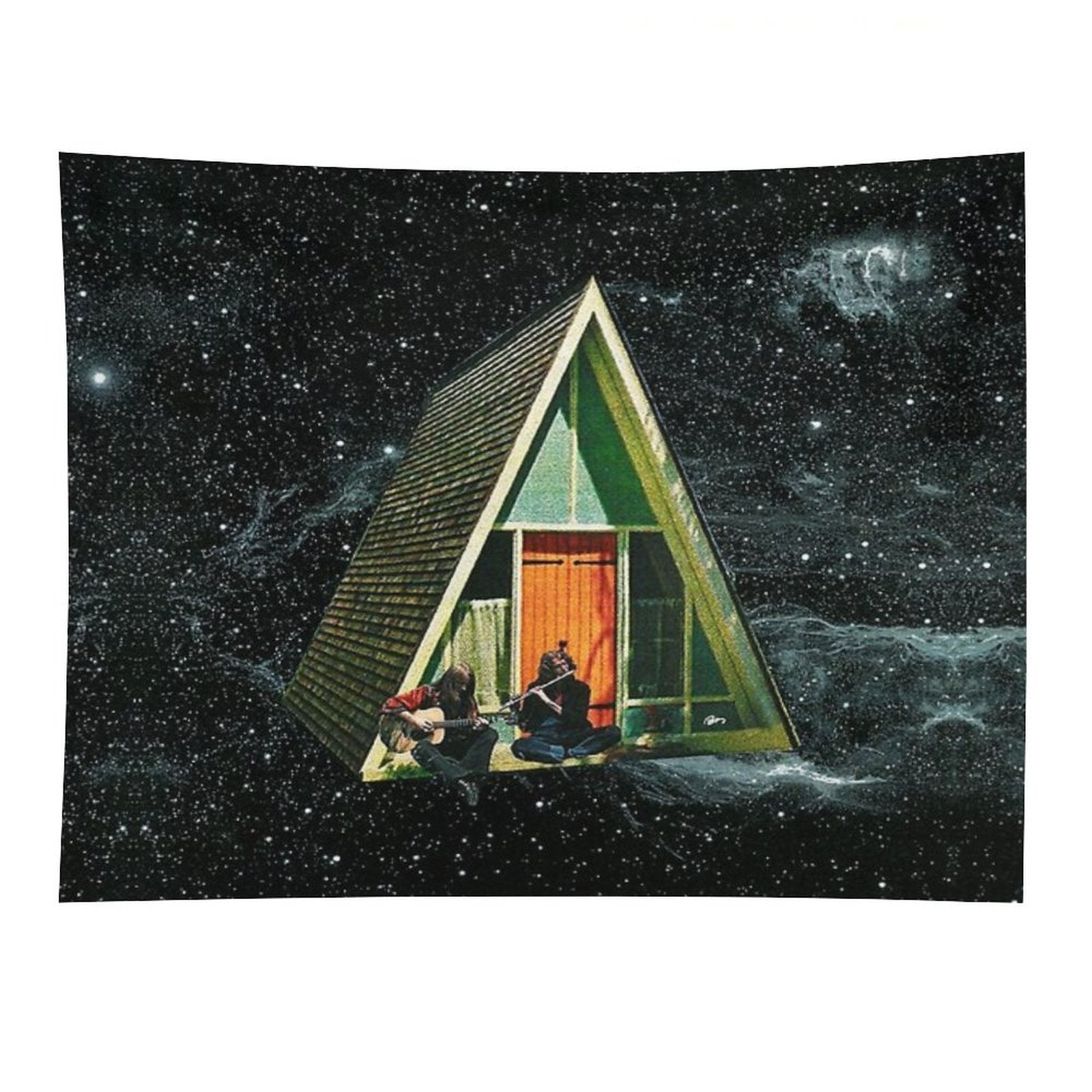 BionZax's A House in Space Tapestry for Bedroom, College Dorm. A House in Space Tapestry to decorate your bedroom, college dorm, living room, or kitchen wall, it is the best gift for funny, meme, aesthetic, trendy, simple, fashion, music, abstract, fantasy, modern tapestry for girls, men, boys, teen, women, kids.