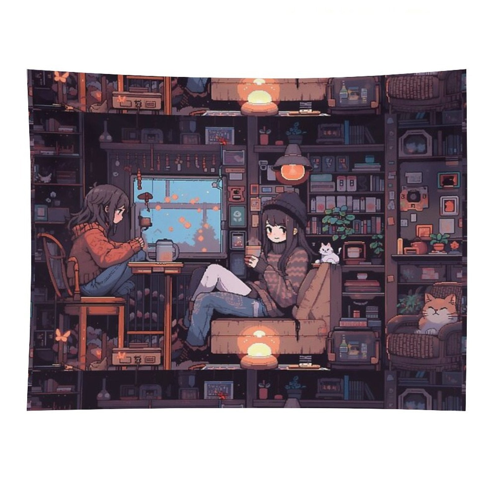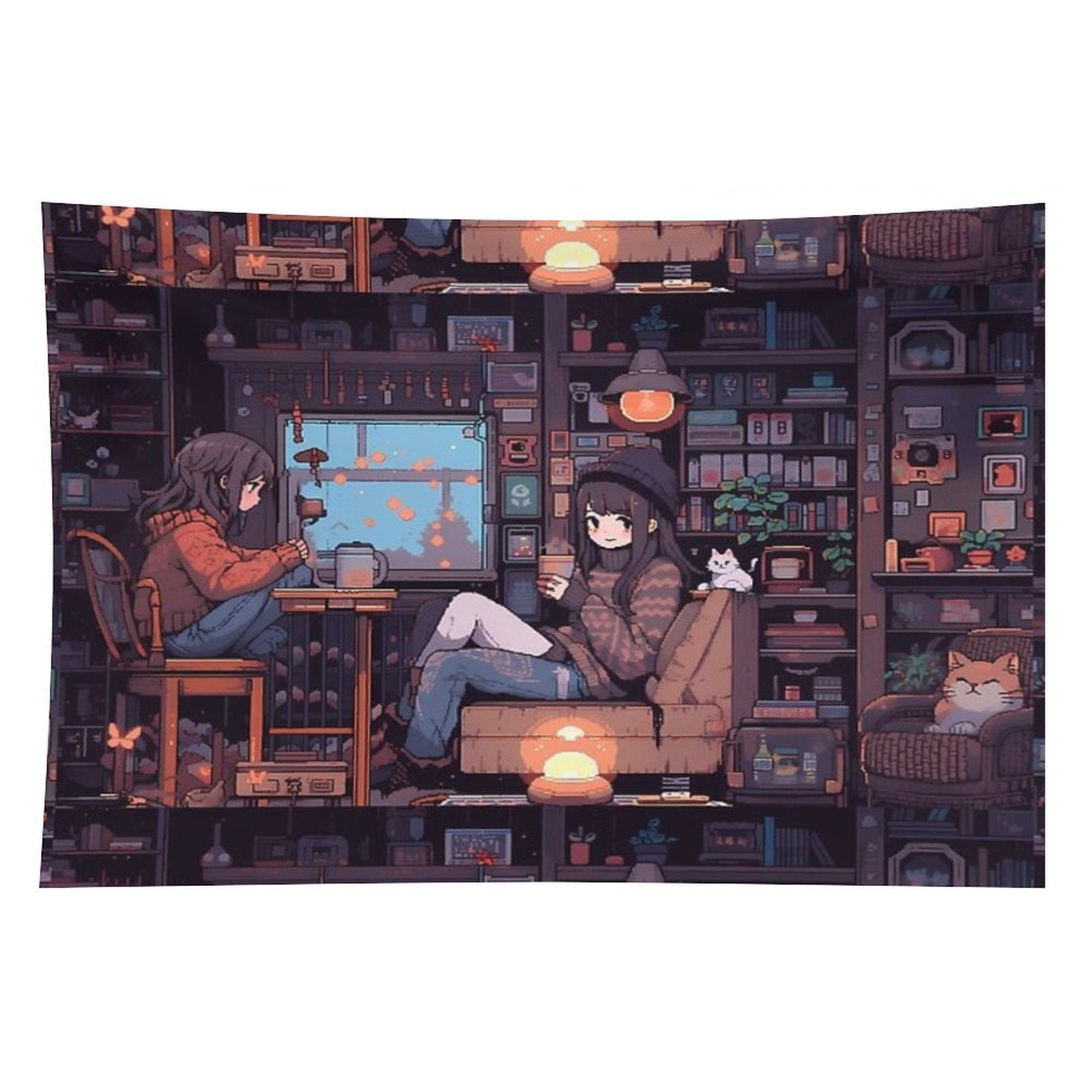 💓【MULTI-FUNCTION】 Used "Anime Girls, Pixel Art- Cozy Tapestry" to decorate your bedroom, college dorm, room, living room, kitchen wall, can be used as tapestry or wall hanging, bedspread, tablecloth, dormitory decoration, beach shawl, tablecloth, etc.