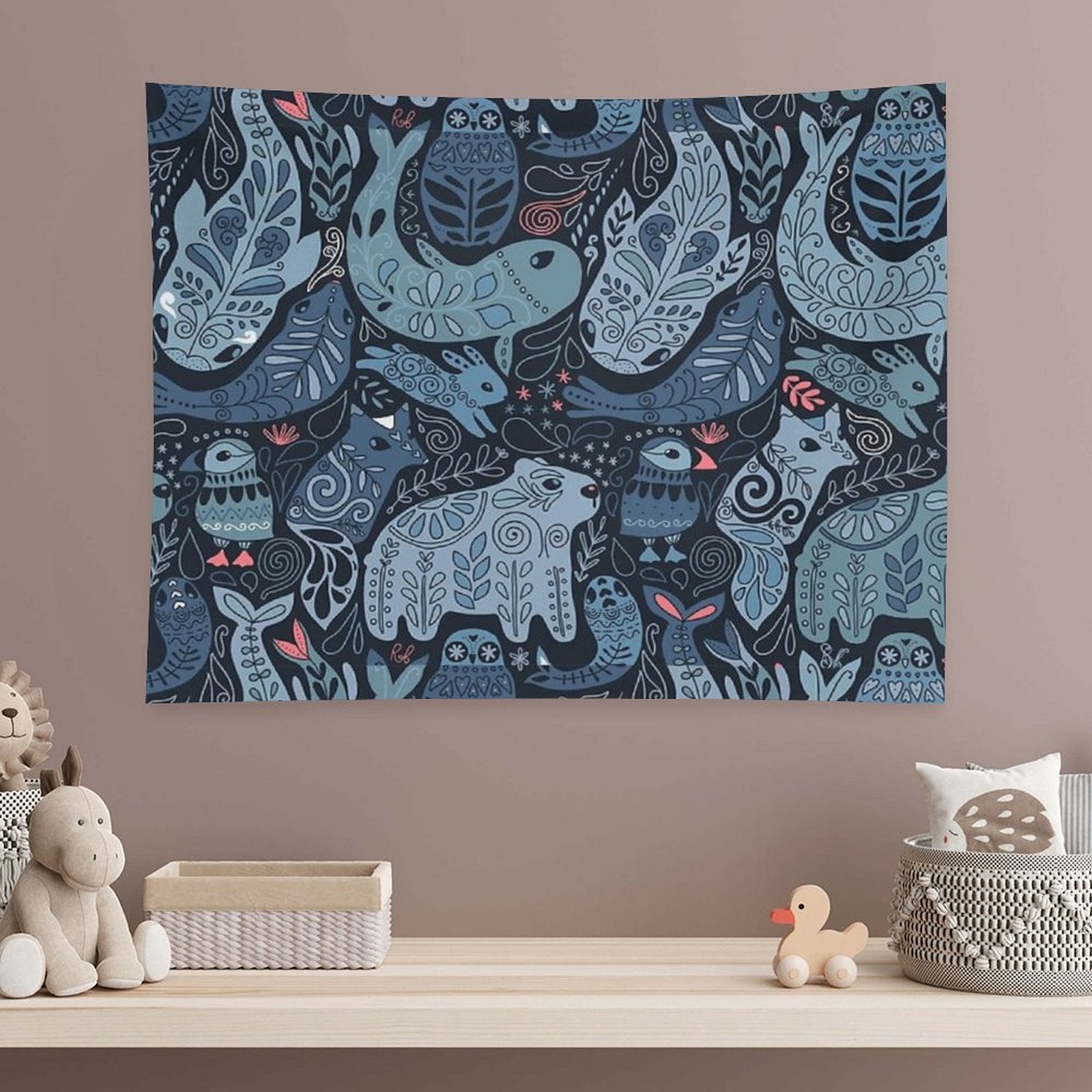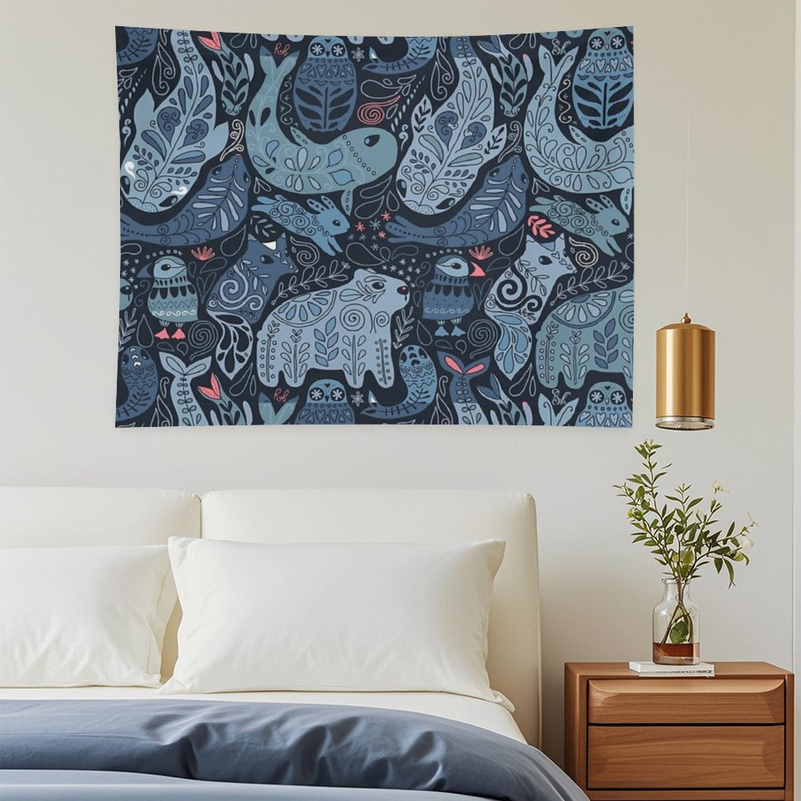 💕【ACCESSORY STRUCTURE】 "Arctic Animals. Narwhal, Polar Bear, Whale, Puffin, Owl, Fox, Bunny, Seal. Tapestry" (lock edge), with 2 barb clips and 3 no trace nail hooks, the two ends of the wall blanket can be fixed on the wall, convenient installation, will not destroy the wall.