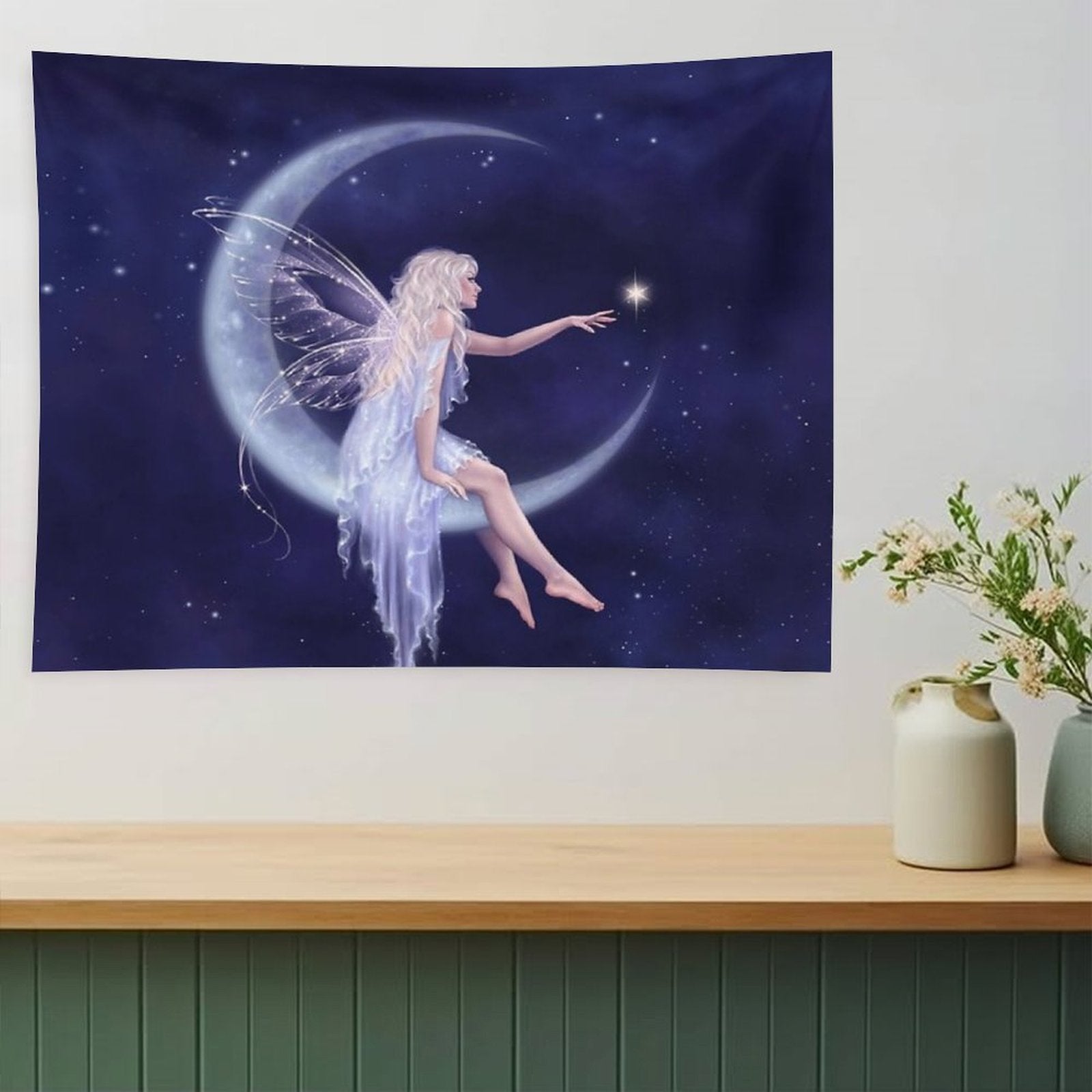 💝【Quality Material】"Birth of A Star Moon Fairy Tapestry" made of 100% polyester, bright colors, durable, lightweight, skin-friendly, soft texture, easy to hang or pack.