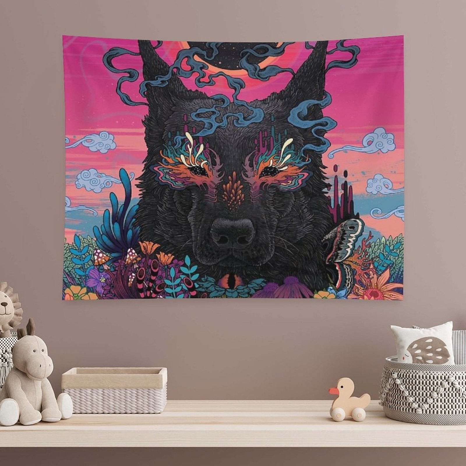 💕【ACCESSORY STRUCTURE】 "Black Eyed Dog Tapestry" (lock edge), with 2 barb clips and 3 no trace nail hooks, the two ends of the wall blanket can be fixed on the wall, convenient installation, will not destroy the wall.