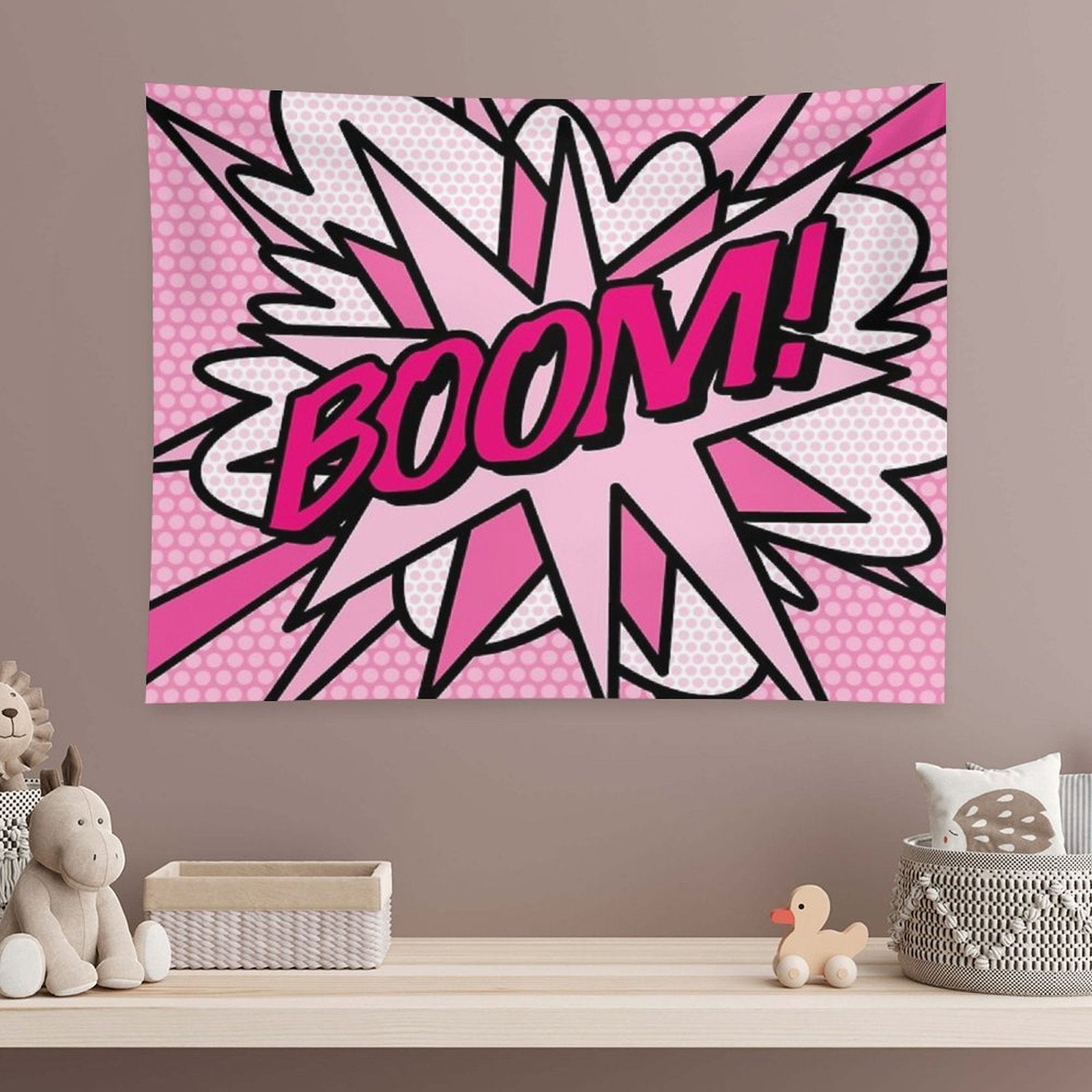 BOOM Pink Comic Book Pop Art Modern Fun Retro Tapestry
