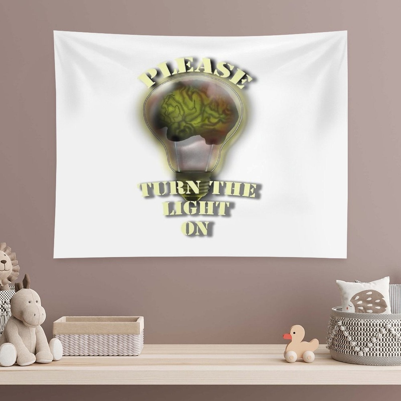 BionZax's Brain in Light Bulb Tapestry for Bedroom, College Dorm. Brain in Light Bulb Tapestry to decorate your bedroom, college dorm, living room, or kitchen wall, it is the best gift for funny, meme, aesthetic, trendy, simple, fashion, music, abstract, fantasy, modern tapestry for girls, men, boys, teen, women, kids.