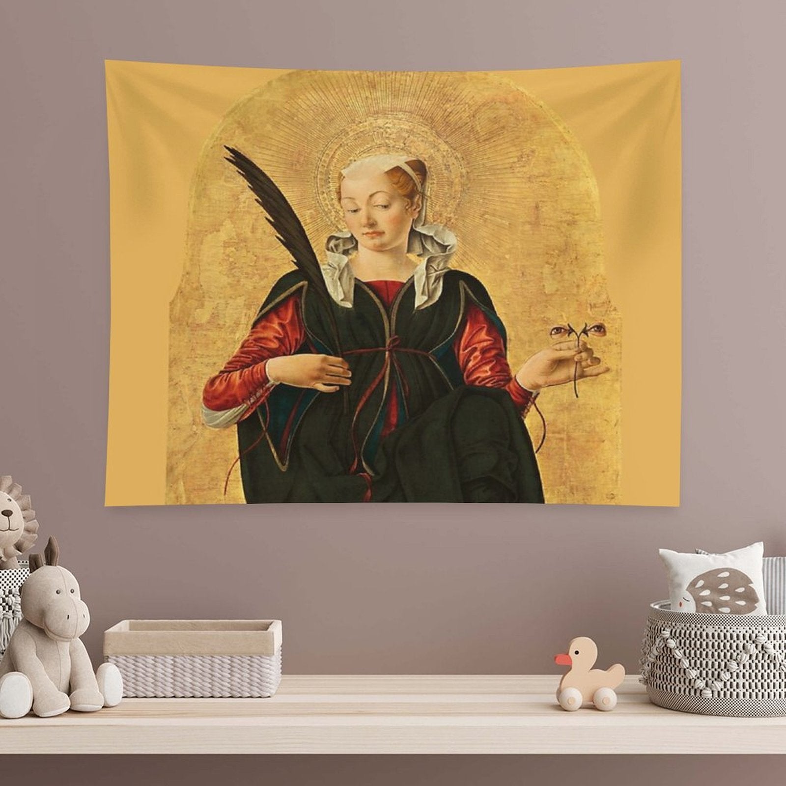 💝【Quality Material】"Digitally Remastered St. Lucy by Francesco Del Cossa Tapestry" made of 100% polyester, bright colors, durable, lightweight, skin-friendly, soft texture, easy to hang or pack.