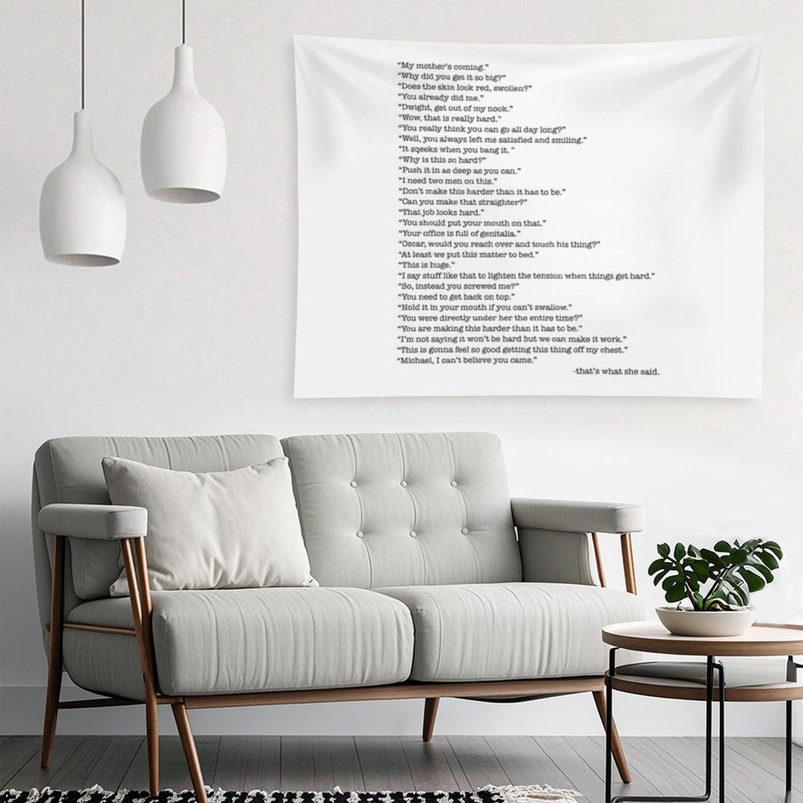 💓【MULTI-FUNCTION】 Used "Every That's What She Said From The Office Tapestry" to decorate your bedroom, college dorm, room, living room, kitchen wall, can be used as tapestry or wall hanging, bedspread, tablecloth, dormitory decoration, beach shawl, tablecloth, etc.