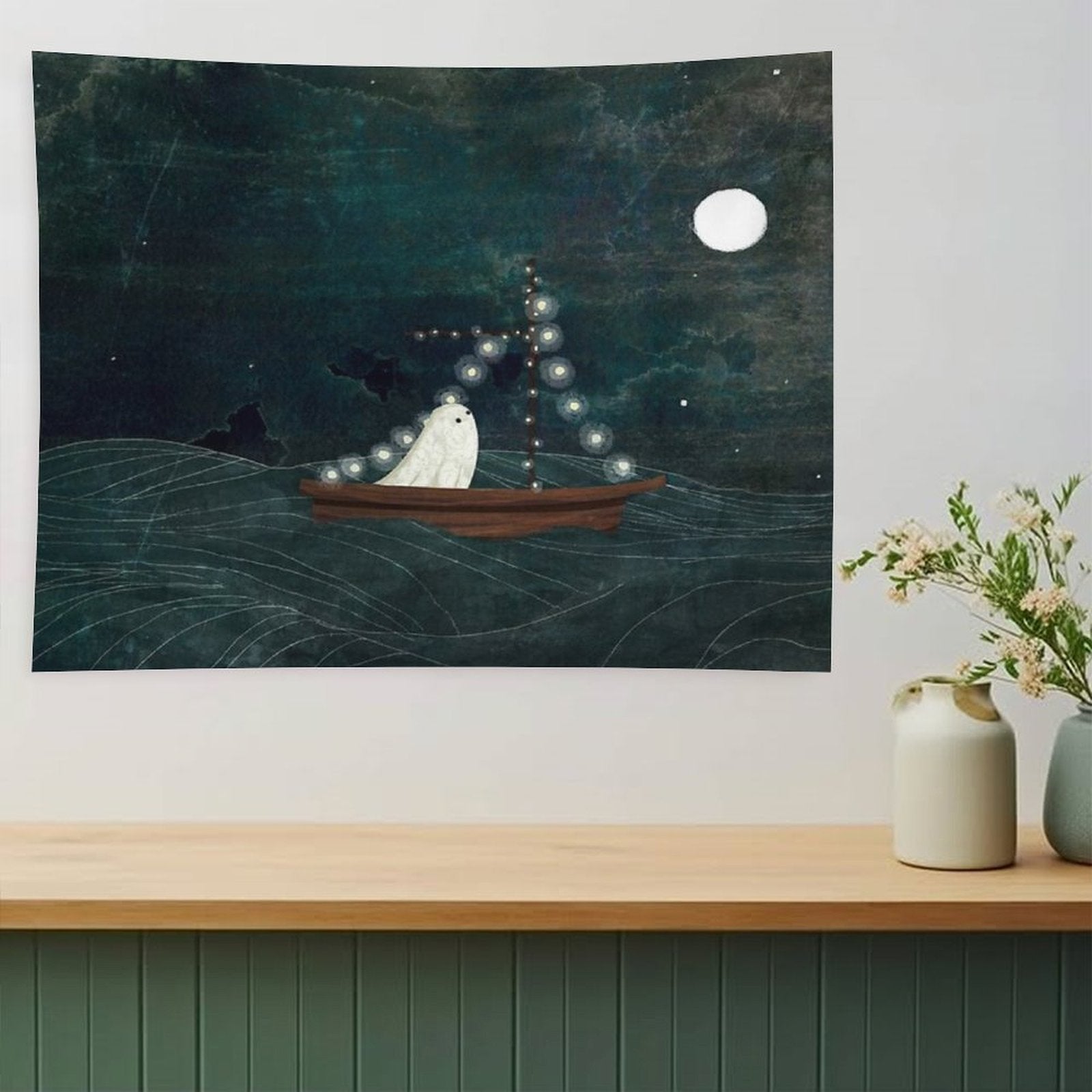 BionZax's Ghost Boat Ride Tapestry for Bedroom, College Dorm. Ghost Boat Ride Tapestry to decorate your bedroom, college dorm, living room, or kitchen wall, it is the best gift for funny, meme, aesthetic, trendy, simple, fashion, music, abstract, fantasy, modern tapestry for girls, men, boys, teen, women, kids.