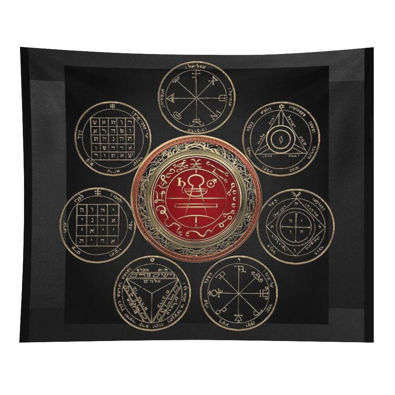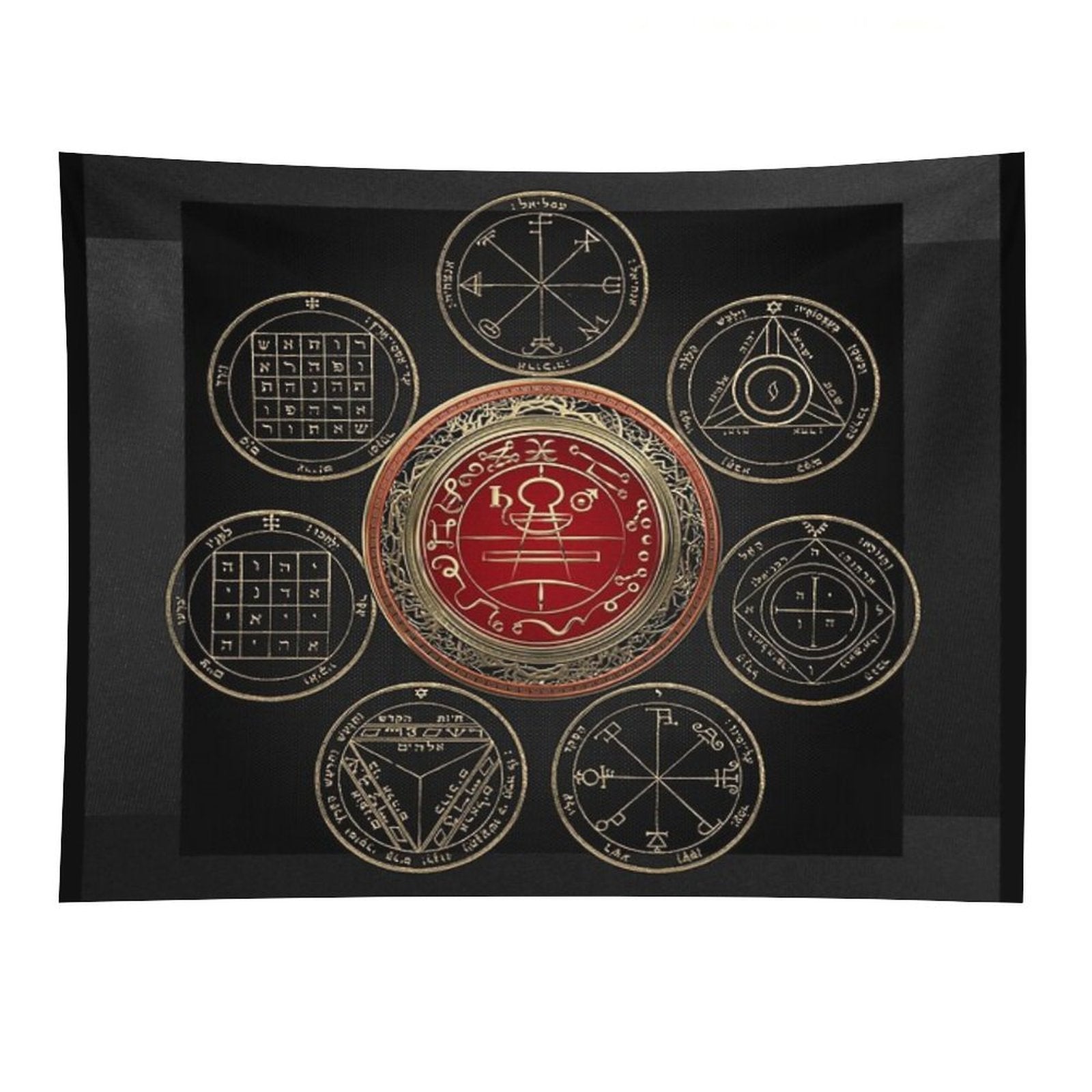 💓【MULTI-FUNCTION】 Used "Gold Seal of Solomon over Seven Pentacles of Saturn on Black Canvas Tapestry" to decorate your bedroom, college dorm, room, living room, kitchen wall, can be used as tapestry or wall hanging, bedspread, tablecloth, dormitory decoration, beach shawl, tablecloth, etc.