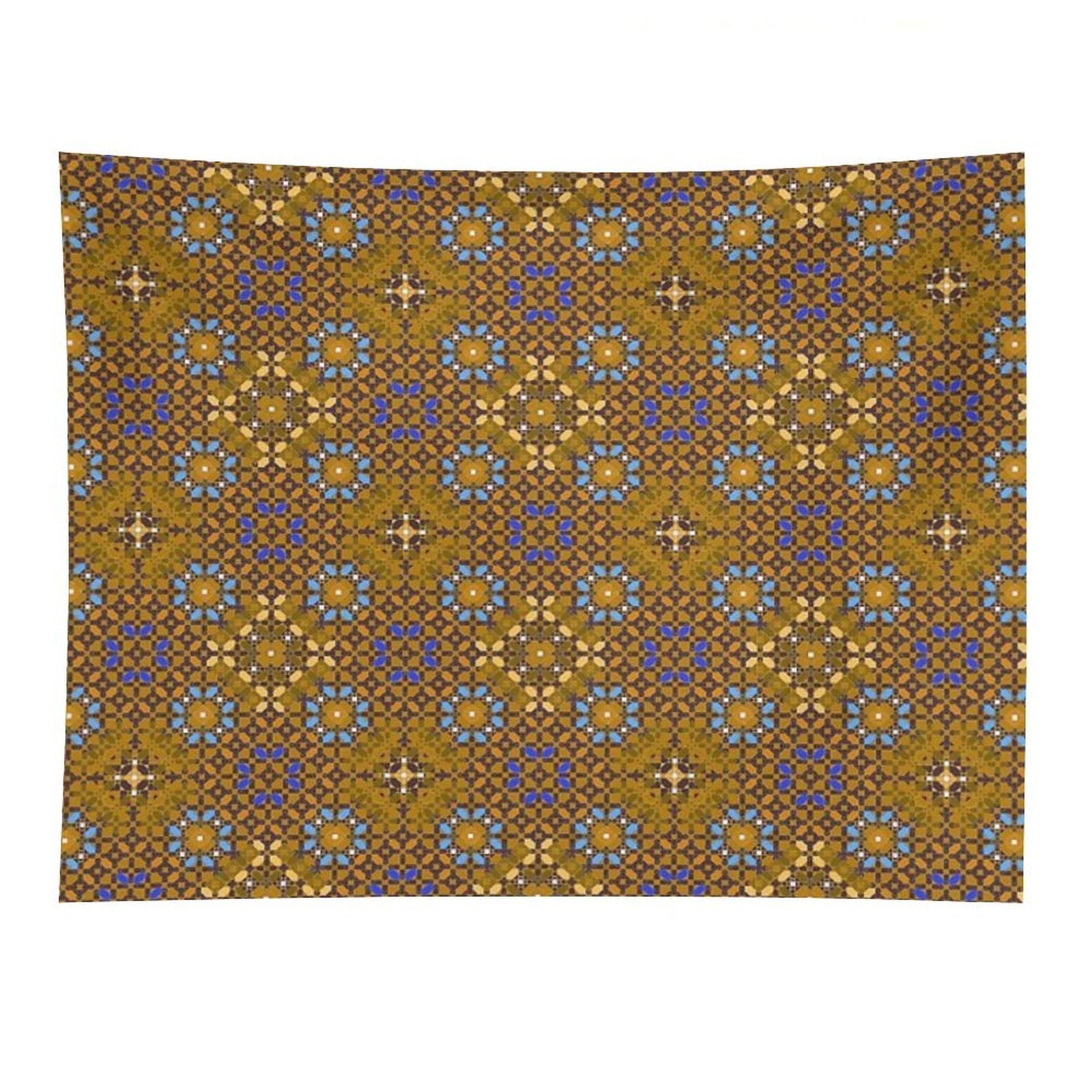 💓【MULTI-FUNCTION】 Used "Golden Brown Geometric Composition with Turquoise Flowers Tapestry" to decorate your bedroom, college dorm, room, living room, kitchen wall, can be used as tapestry or wall hanging, bedspread, tablecloth, dormitory decoration, beach shawl, tablecloth, etc.