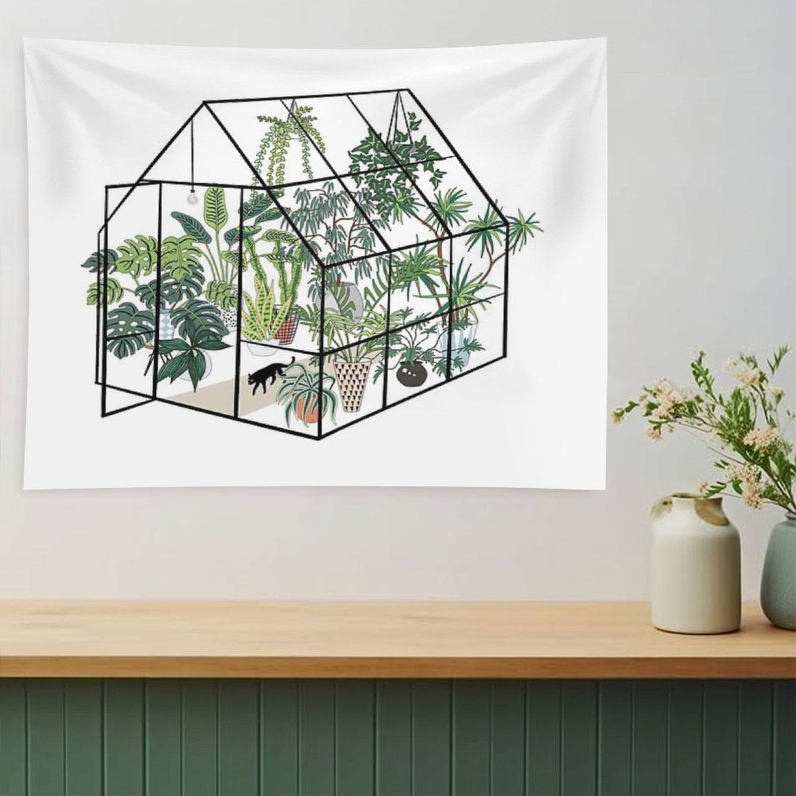 BionZax's Greenhouse with Plants Tapestry for Bedroom, College Dorm. Greenhouse with Plants Tapestry to decorate your bedroom, college dorm, living room, or kitchen wall, it is the best gift for funny, meme, aesthetic, trendy, simple, fashion, music, abstract, fantasy, modern tapestry for girls, men, boys, teen, women, kids.
