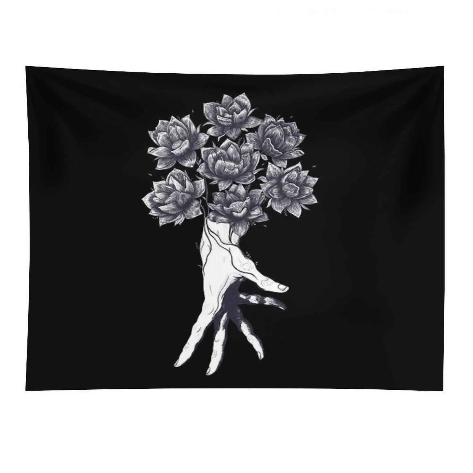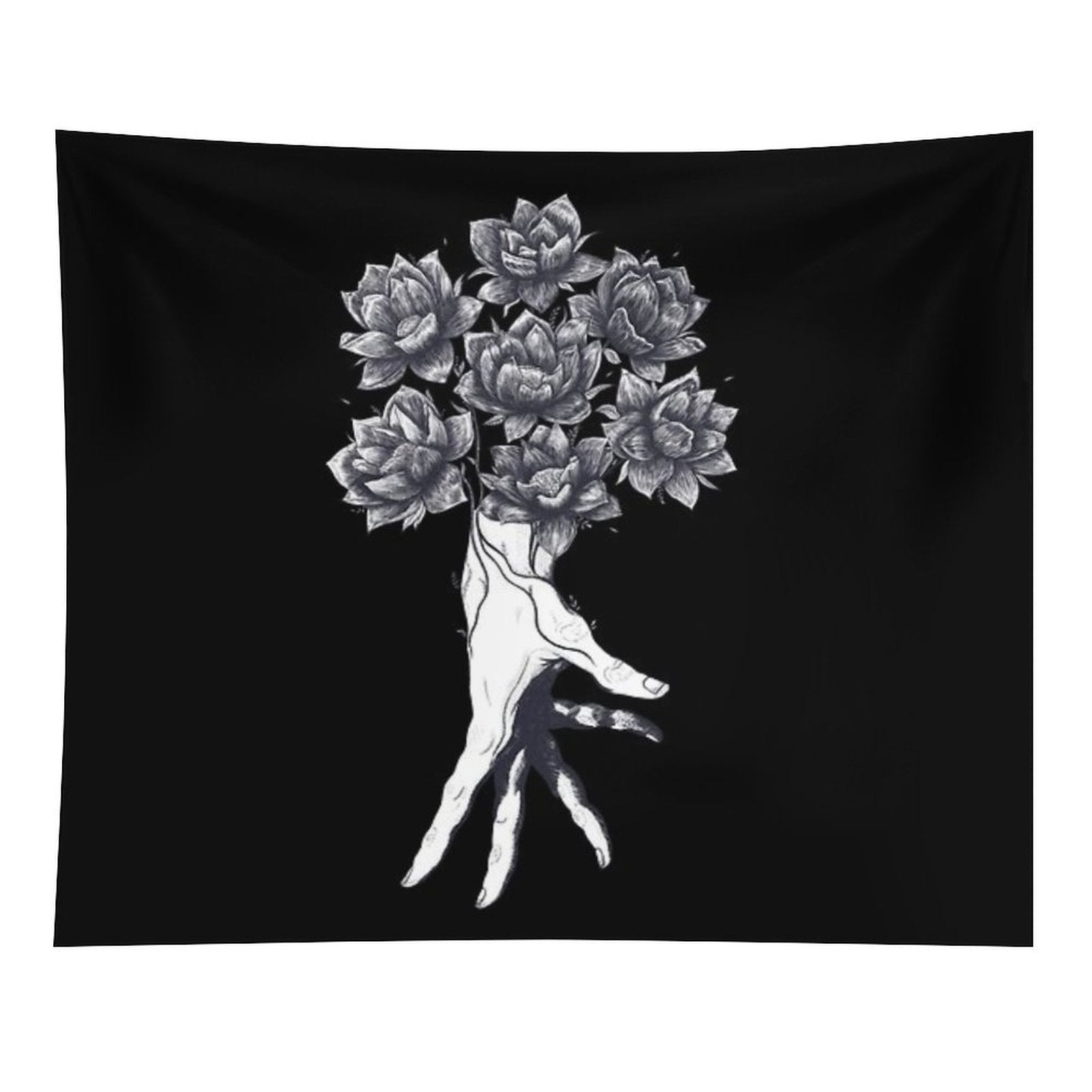 💓【MULTI-FUNCTION】 Used "Hand with Lotuses on Black Tapestry" to decorate your bedroom, college dorm, room, living room, kitchen wall, can be used as tapestry or wall hanging, bedspread, tablecloth, dormitory decoration, beach shawl, tablecloth, etc.
