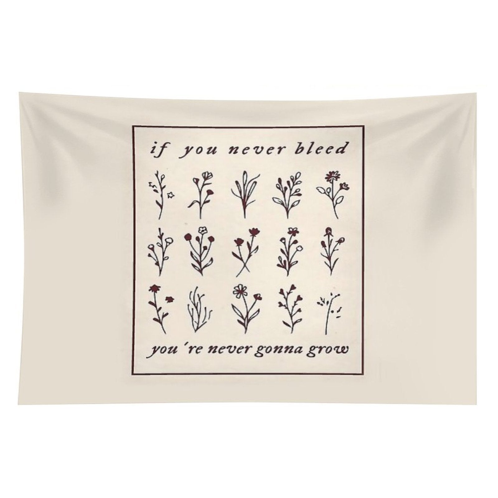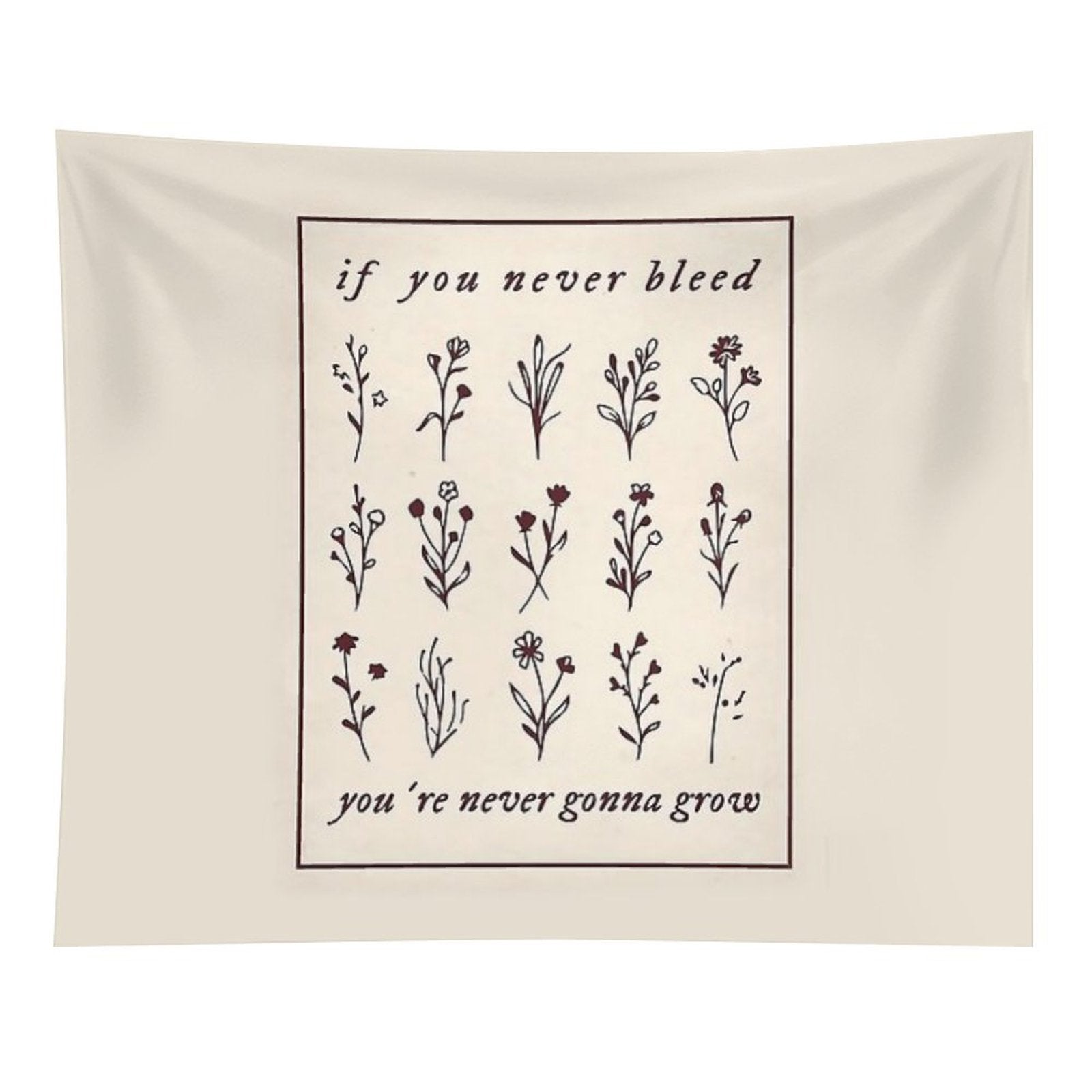 BionZax's If You Never Bleed You're Never Gonna Grow Tapestry for Bedroom, College Dorm. If You Never Bleed You're Never Gonna Grow Tapestry to decorate your bedroom, college dorm, living room, or kitchen wall, it is the best gift for funny, meme, aesthetic, trendy, simple, fashion, music, abstract, fantasy, modern tapestry for girls, men, boys, teen, women, kids.