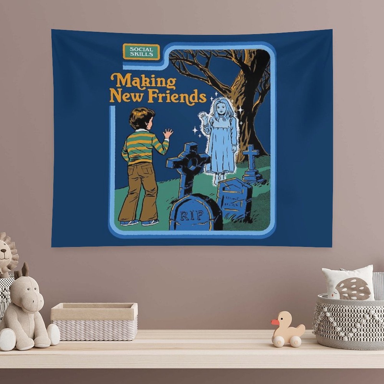 BionZax's Making New Friends Tapestry for Bedroom, College Dorm. Making New Friends Tapestry to decorate your bedroom, college dorm, living room, or kitchen wall, it is the best gift for funny, meme, aesthetic, trendy, simple, fashion, music, abstract, fantasy, modern tapestry for girls, men, boys, teen, women, kids.