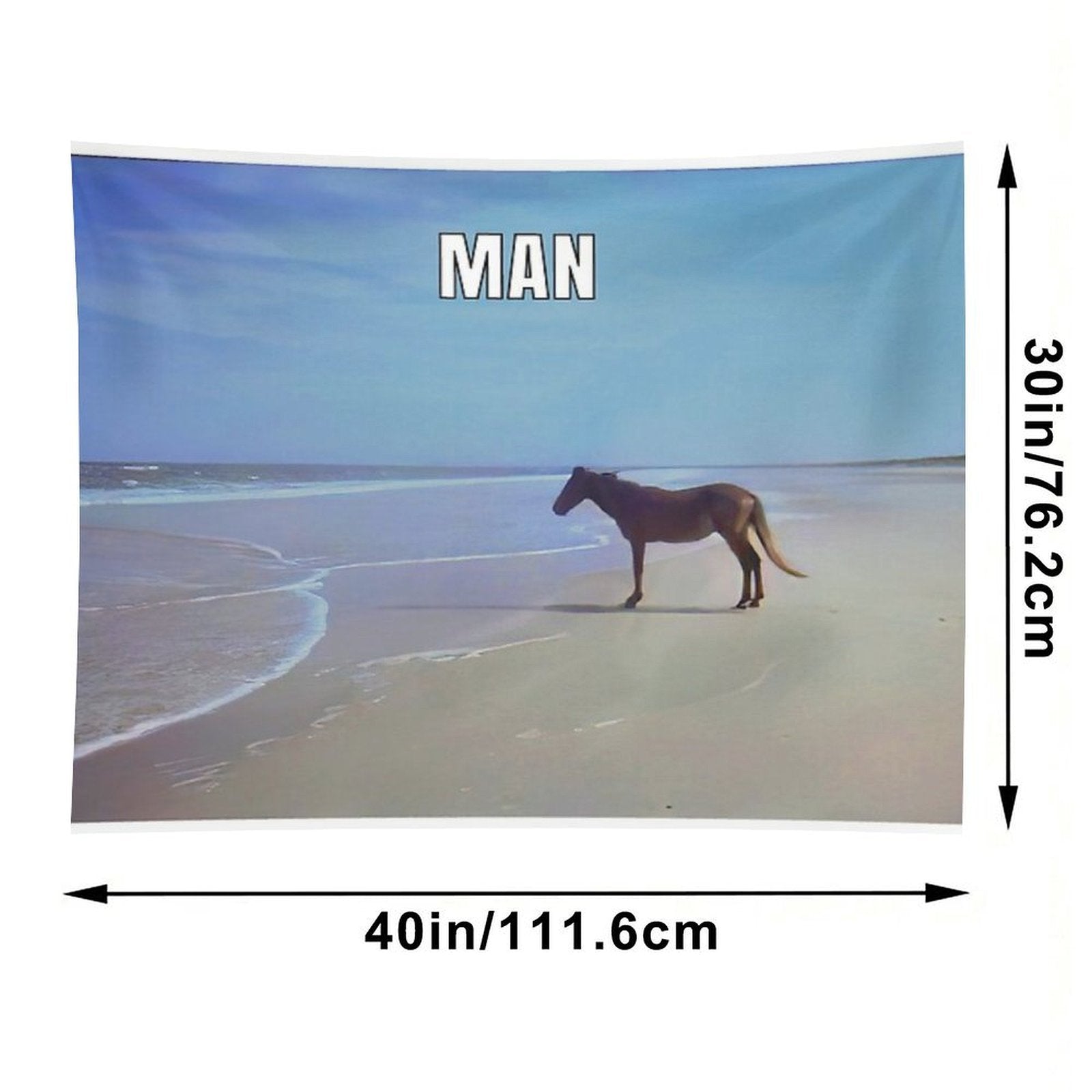💝【Quality Material】"Man ♞ HD Horse on Beach Meme Tapestry" made of 100% polyester, bright colors, durable, lightweight, skin-friendly, soft texture, easy to hang or pack.
