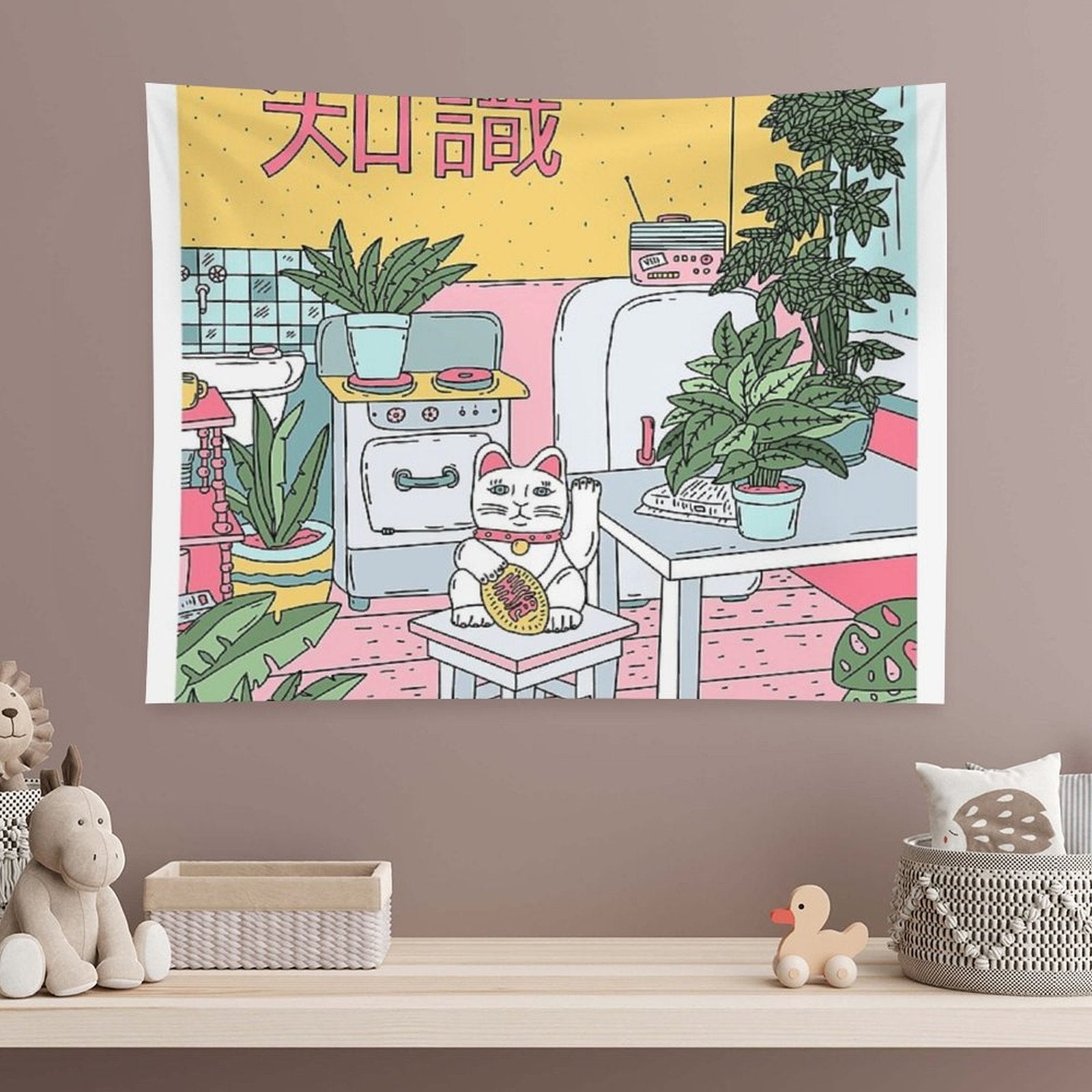 💓【MULTI-FUNCTION】 Used "Maneki Plants Tapestry" to decorate your bedroom, college dorm, room, living room, kitchen wall, can be used as tapestry or wall hanging, bedspread, tablecloth, dormitory decoration, beach shawl, tablecloth, etc.