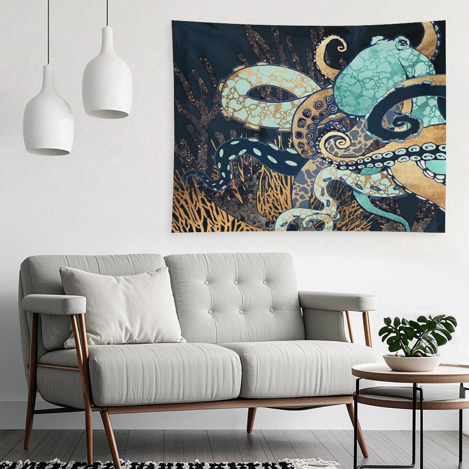 BionZax's Metallic Octopus II Tapestry for Bedroom, College Dorm. Metallic Octopus II Tapestry to decorate your bedroom, college dorm, living room, or kitchen wall, it is the best gift for funny, meme, aesthetic, trendy, simple, fashion, music, abstract, fantasy, modern tapestry for girls, men, boys, teen, women, kids.