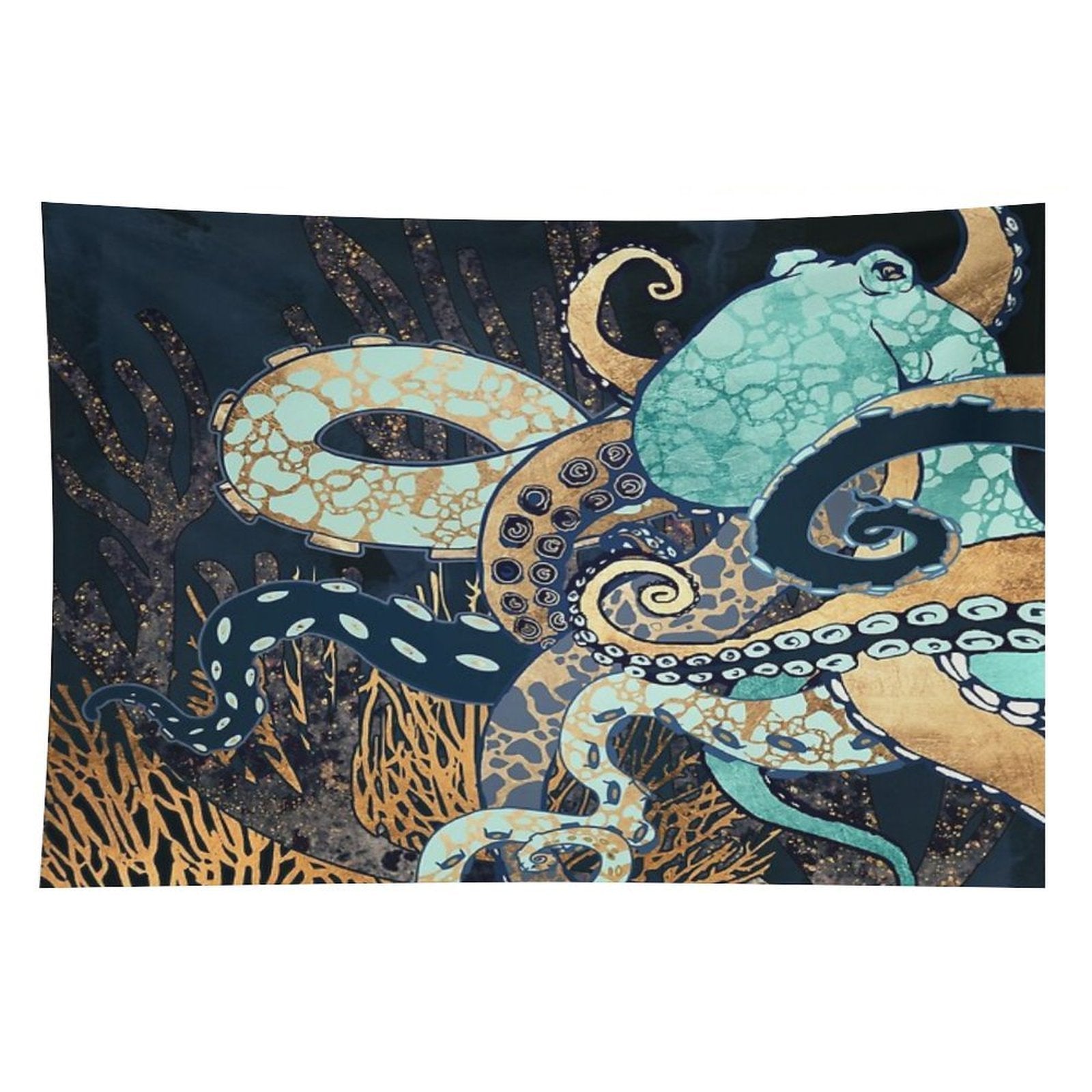 💓【MULTI-FUNCTION】 Used "Metallic Octopus II Tapestry" to decorate your bedroom, college dorm, room, living room, kitchen wall, can be used as tapestry or wall hanging, bedspread, tablecloth, dormitory decoration, beach shawl, tablecloth, etc.