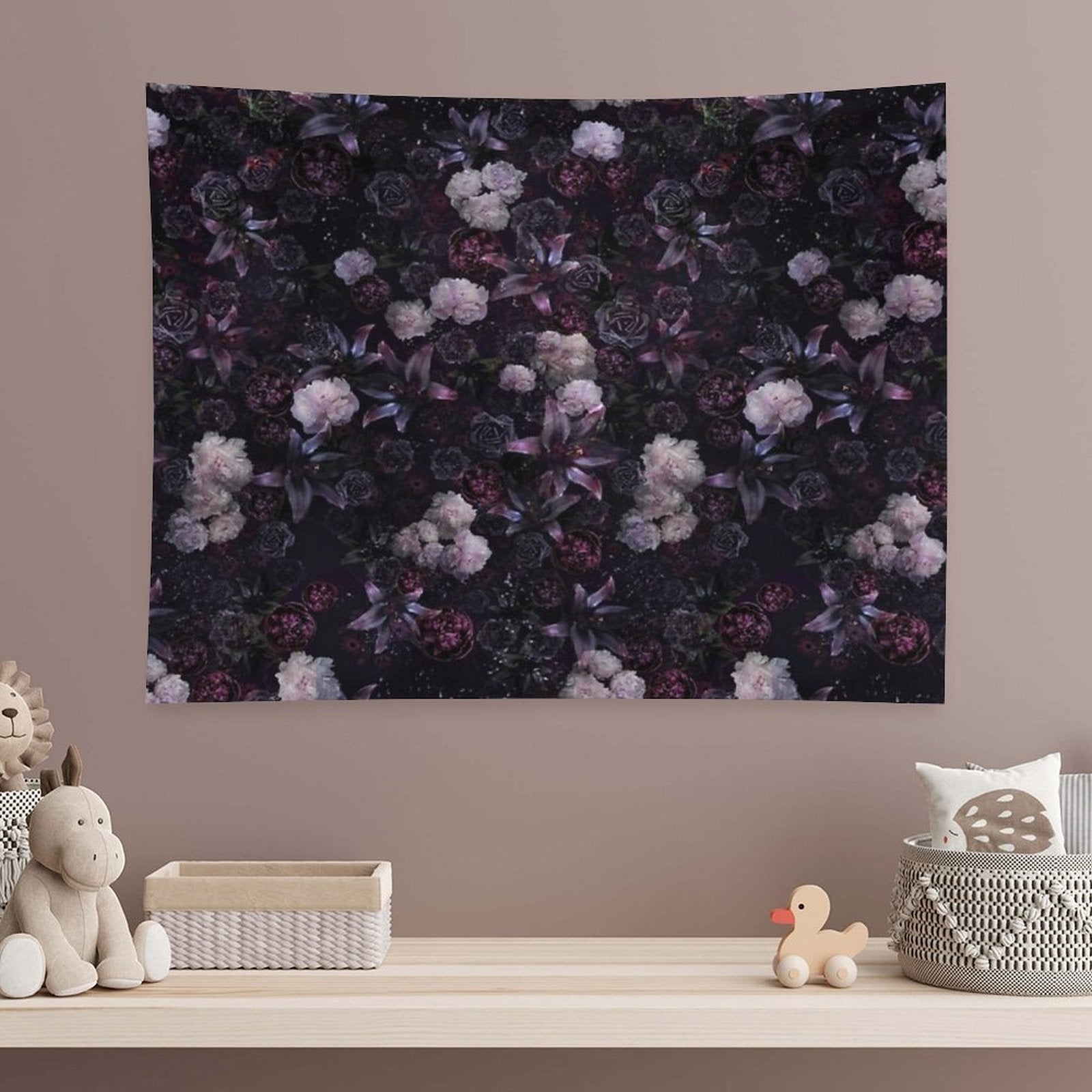 BionZax's Midsummer Nights Dream #Dark Floral #Midnight #Black #Rose #Night Tapestry for Bedroom, College Dorm. Midsummer Nights Dream #Dark Floral #Midnight #Black #Rose #Night Tapestry to decorate your bedroom, college dorm, living room, or kitchen wall, it is the best gift for funny, meme, aesthetic, trendy, simple, fashion, music, abstract, fantasy, modern tapestry for girls, men, boys, teen, women, kids.