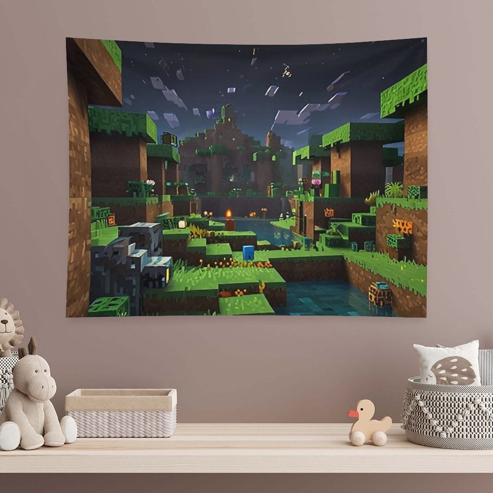 💝【Quality Material】"Minecraft Night Tapestry" made of 100% polyester, bright colors, durable, lightweight, skin-friendly, soft texture, easy to hang or pack.
