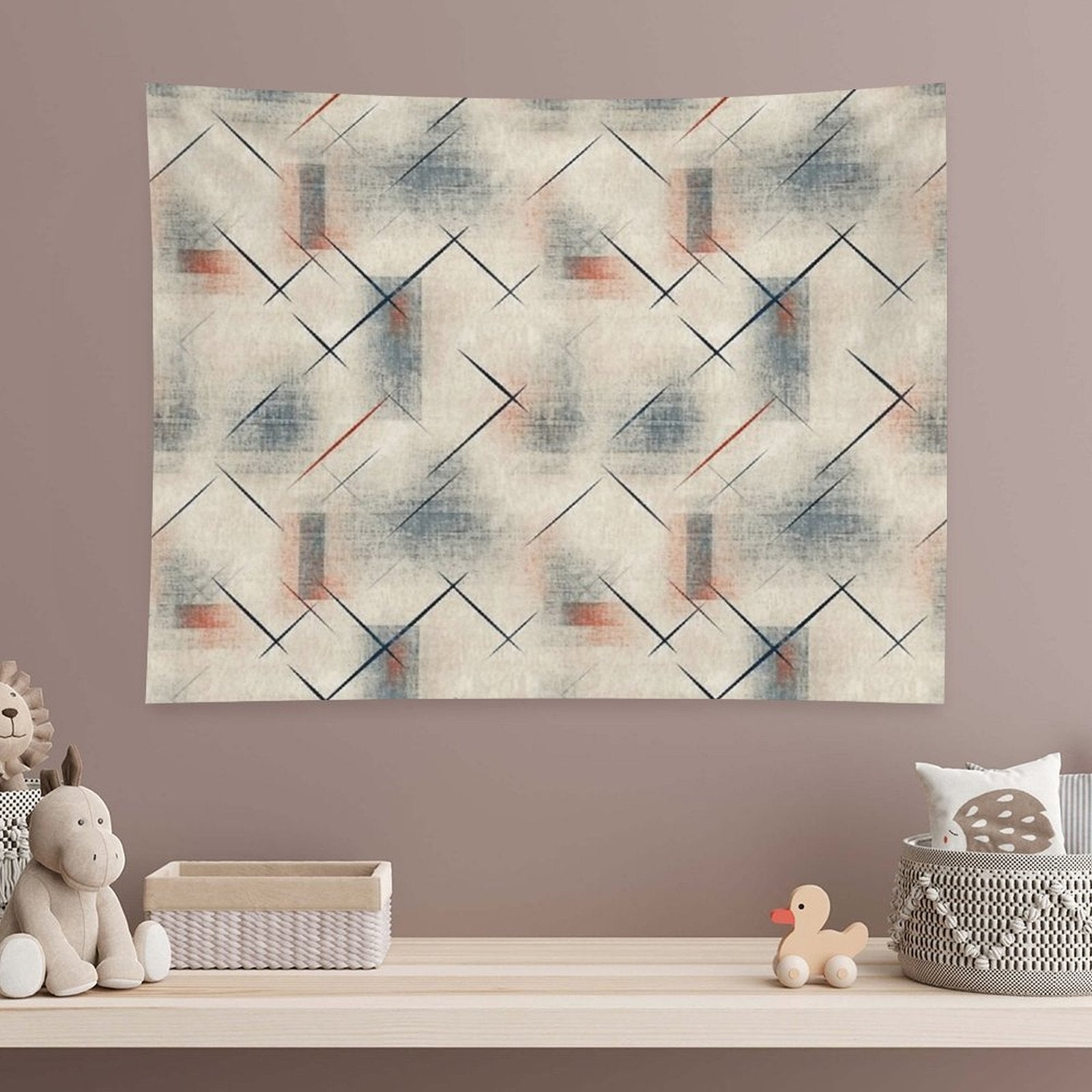 💕【ACCESSORY STRUCTURE】 "Retro Abstract Geometric Pattern – Mid Century Modern Art Tapestry" (lock edge), with 2 barb clips and 3 no trace nail hooks, the two ends of the wall blanket can be fixed on the wall, convenient installation, will not destroy the wall.