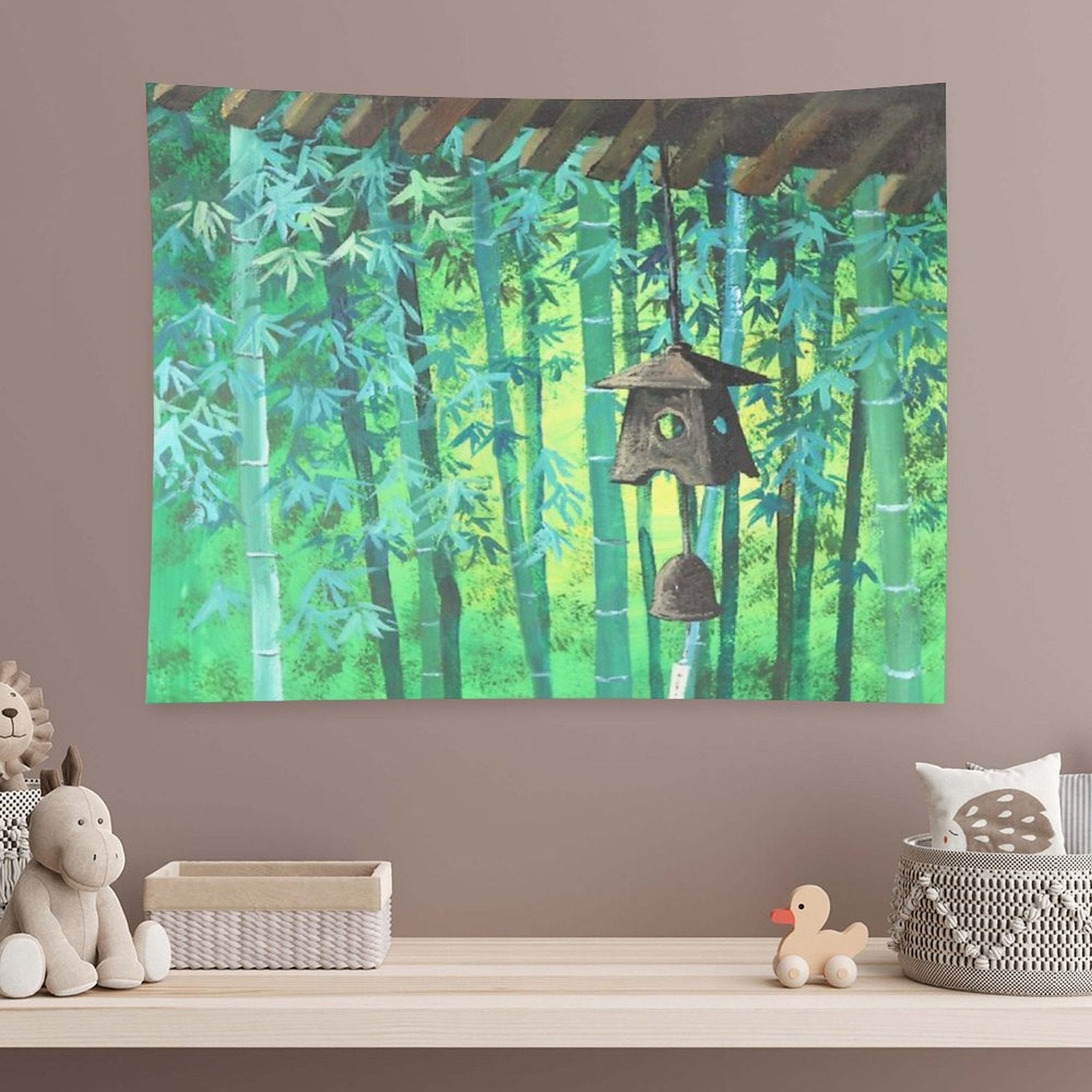 💕【ACCESSORY STRUCTURE】 "Summer Meditation Zen Japanese Garden Wind Chimes Bamboo Tapestry" (lock edge), with 2 barb clips and 3 no trace nail hooks, the two ends of the wall blanket can be fixed on the wall, convenient installation, will not destroy the wall.