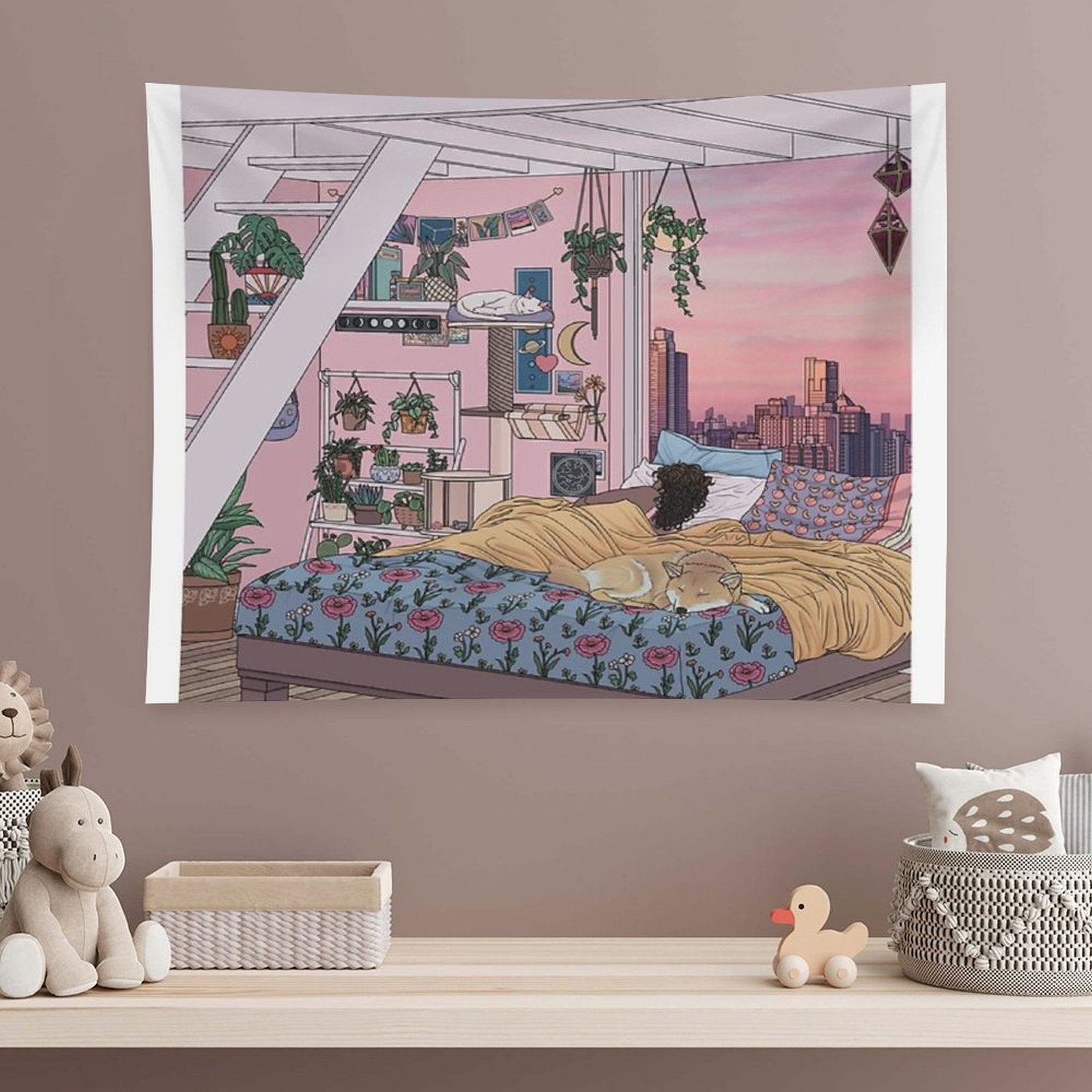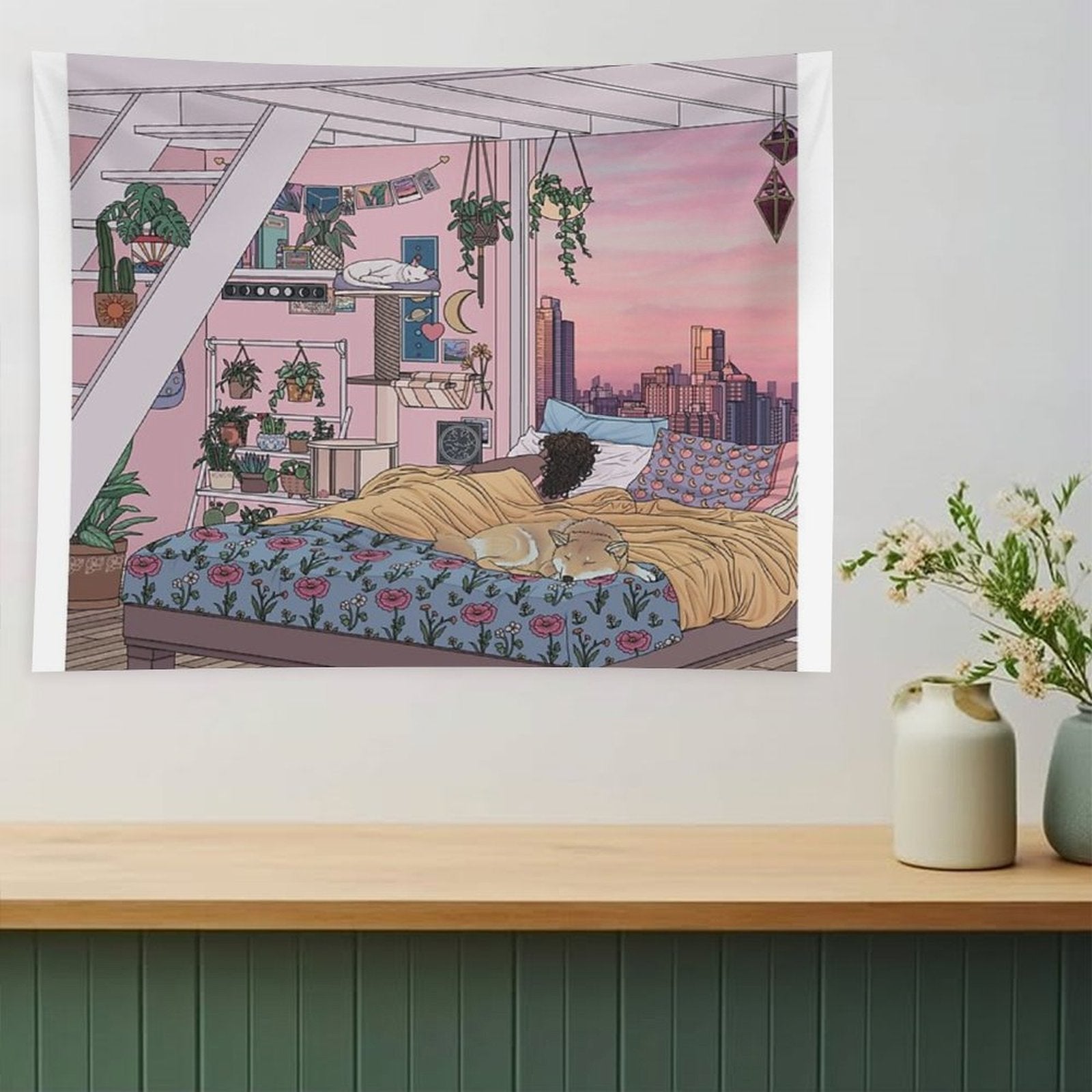 💝【Quality Material】"Sweet Dreams Tapestry" made of 100% polyester, bright colors, durable, lightweight, skin-friendly, soft texture, easy to hang or pack.
