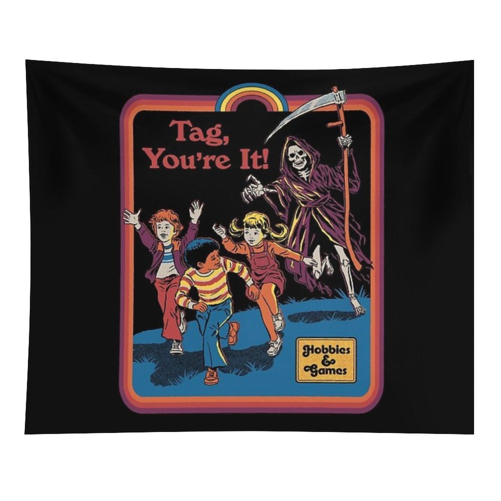 BionZax's Tag, You're It Tapestry for Bedroom, College Dorm. Tag, You're It Tapestry to decorate your bedroom, college dorm, living room, or kitchen wall, it is the best gift for funny, meme, aesthetic, trendy, simple, fashion, music, abstract, fantasy, modern tapestry for girls, men, boys, teen, women, kids.