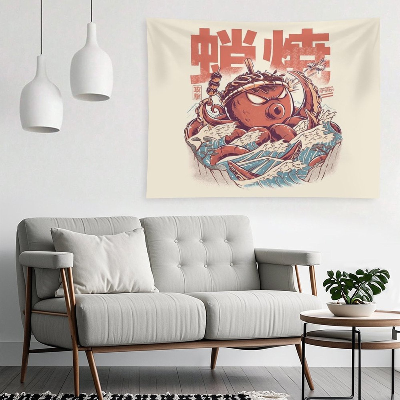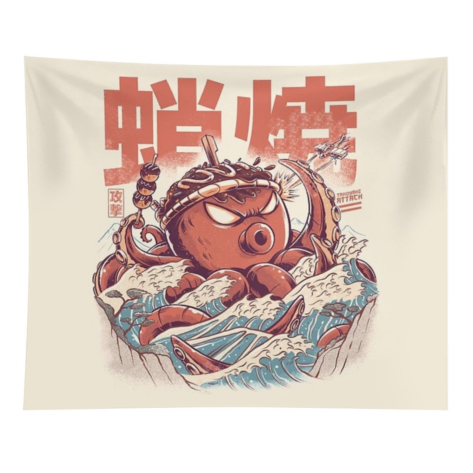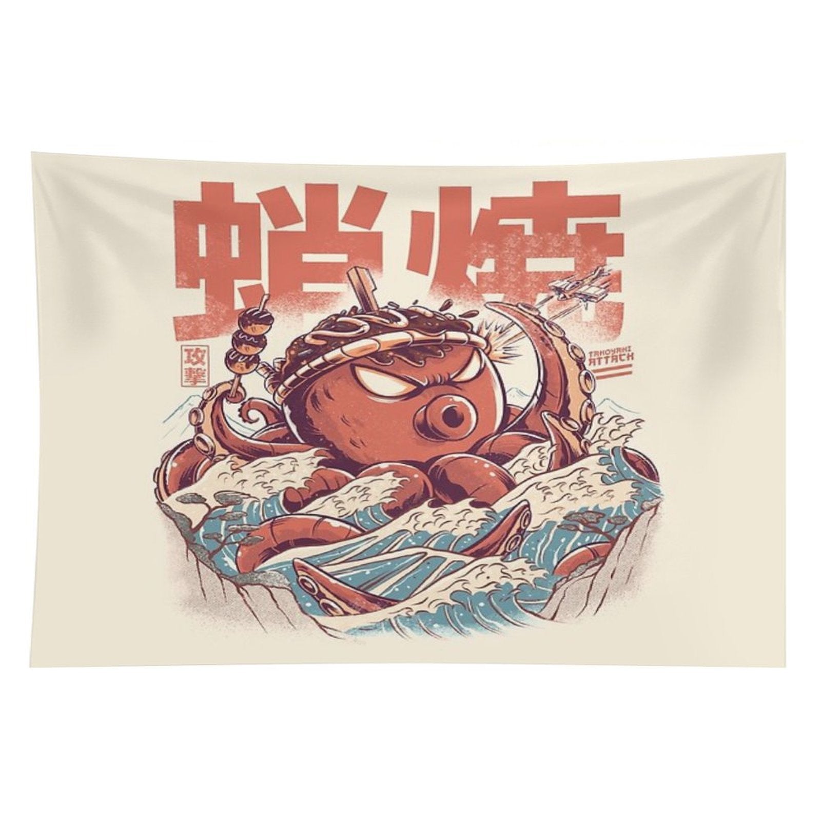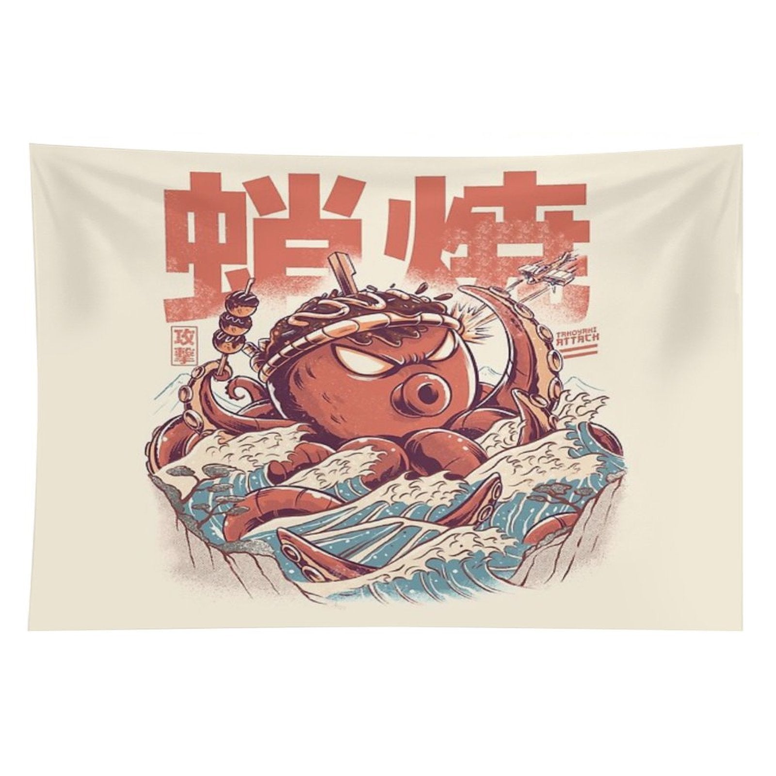 💓【MULTI-FUNCTION】 Used "Takoyaki Attack Tapestry" to decorate your bedroom, college dorm, room, living room, kitchen wall, can be used as tapestry or wall hanging, bedspread, tablecloth, dormitory decoration, beach shawl, tablecloth, etc.