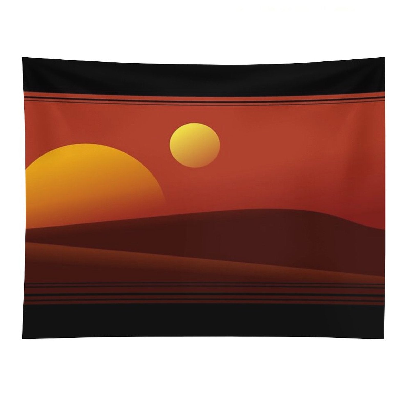 BionZax's TATOOINE SUNSET Tapestry for Bedroom, College Dorm. TATOOINE SUNSET Tapestry to decorate your bedroom, college dorm, living room, or kitchen wall, it is the best gift for funny, meme, aesthetic, trendy, simple, fashion, music, abstract, fantasy, modern tapestry for girls, men, boys, teen, women, kids.