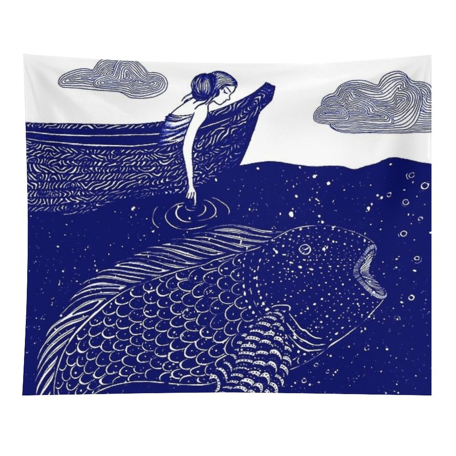 💕【ACCESSORY STRUCTURE】 "The Blue Shimmering Sea Lights Tapestry" (lock edge), with 2 barb clips and 3 no trace nail hooks, the two ends of the wall blanket can be fixed on the wall, convenient installation, will not destroy the wall.