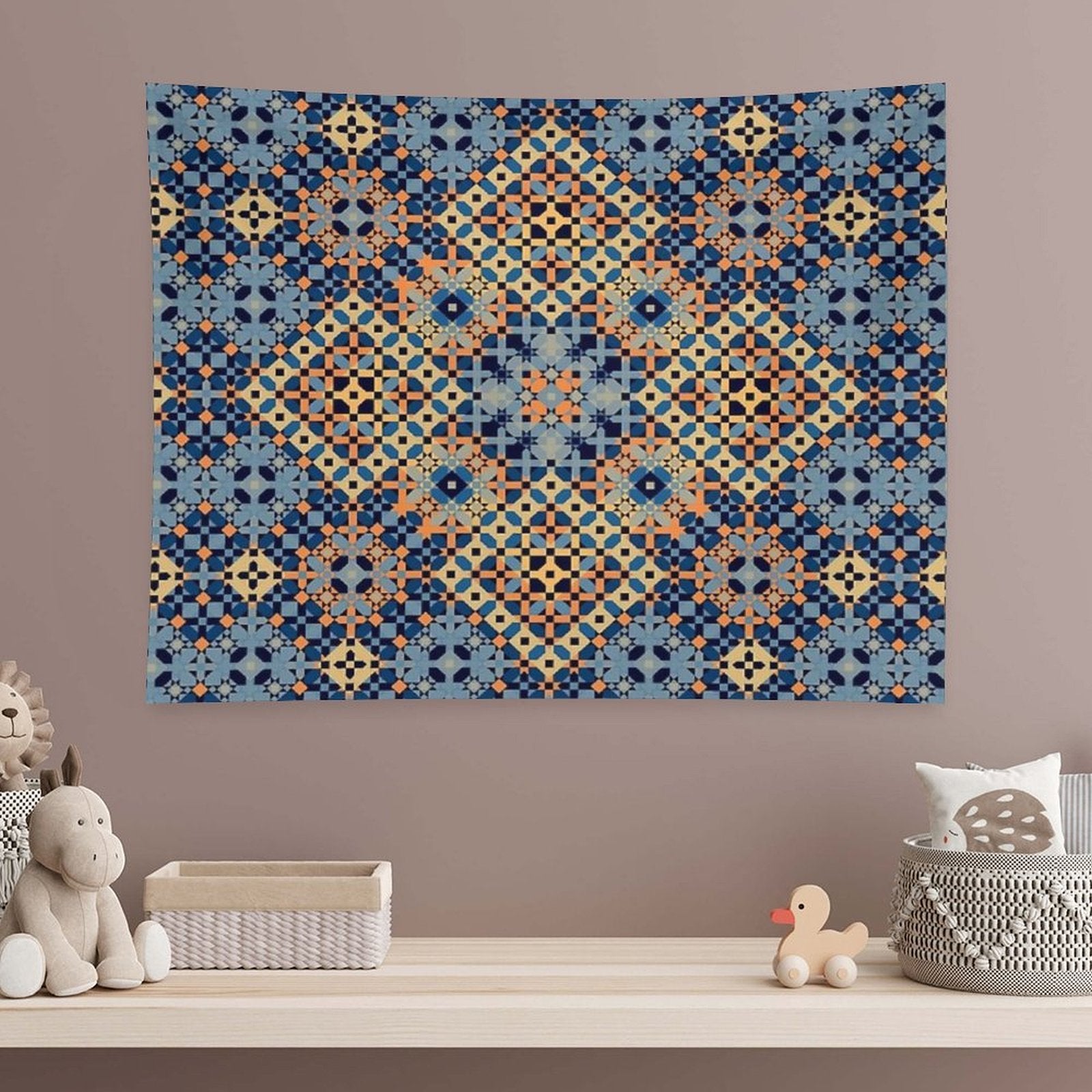 BionZax's The Four Squares Delicate Islamic Mosaic Tapestry for Bedroom, College Dorm. The Four Squares Delicate Islamic Mosaic Tapestry to decorate your bedroom, college dorm, living room, or kitchen wall, it is the best gift for funny, meme, aesthetic, trendy, simple, fashion, music, abstract, fantasy, modern tapestry for girls, men, boys, teen, women, kids.