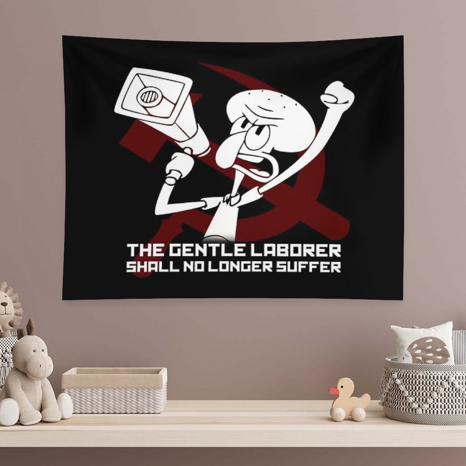 BionZax's The Gentle Laborer Shall No Longer Suffer! Tapestry for Bedroom, College Dorm. The Gentle Laborer Shall No Longer Suffer! Tapestry to decorate your bedroom, college dorm, living room, or kitchen wall, it is the best gift for funny, meme, aesthetic, trendy, simple, fashion, music, abstract, fantasy, modern tapestry for girls, men, boys, teen, women, kids.