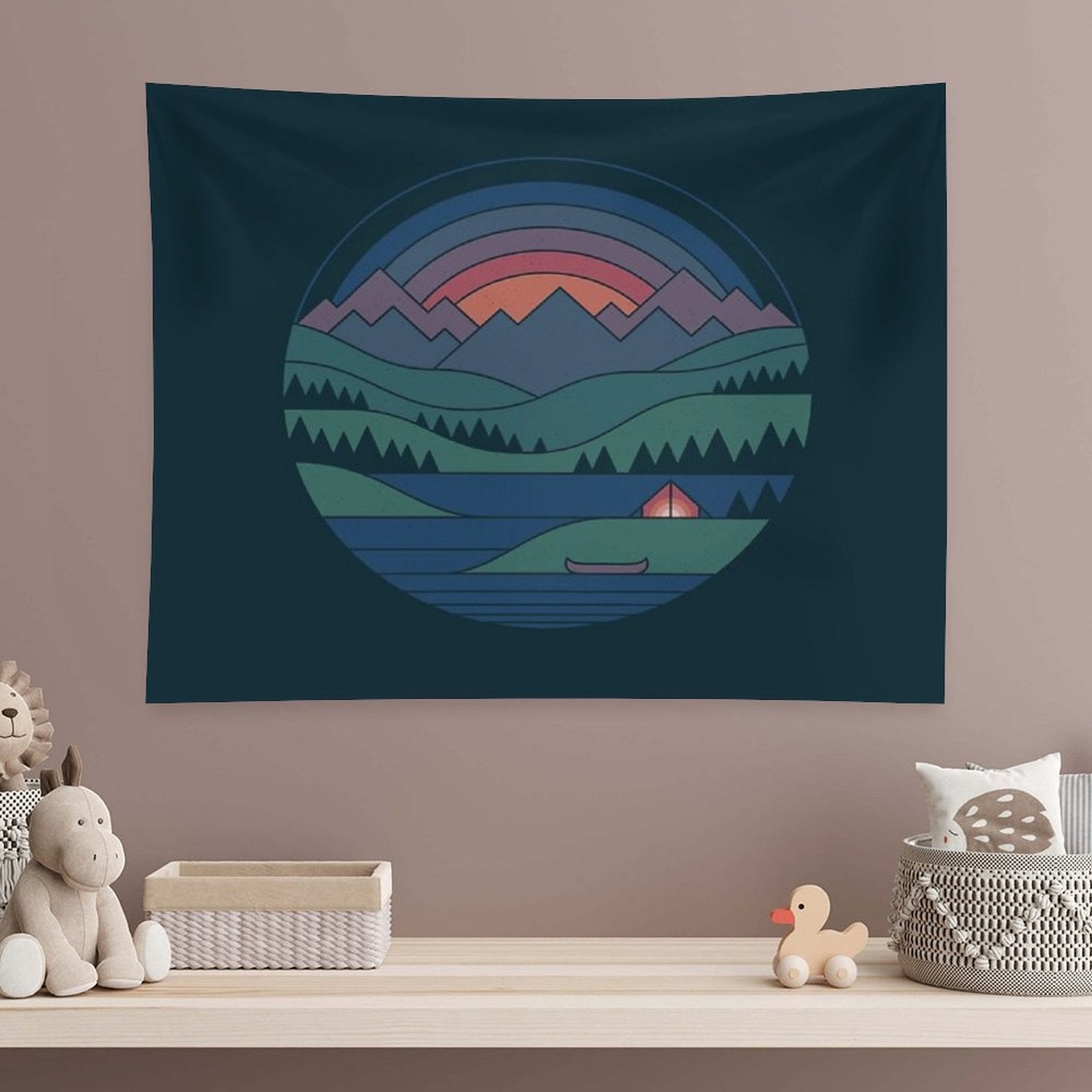 BionZax's The Lake at Twilight Tapestry for Bedroom, College Dorm. The Lake at Twilight Tapestry to decorate your bedroom, college dorm, living room, or kitchen wall, it is the best gift for funny, meme, aesthetic, trendy, simple, fashion, music, abstract, fantasy, modern tapestry for girls, men, boys, teen, women, kids.