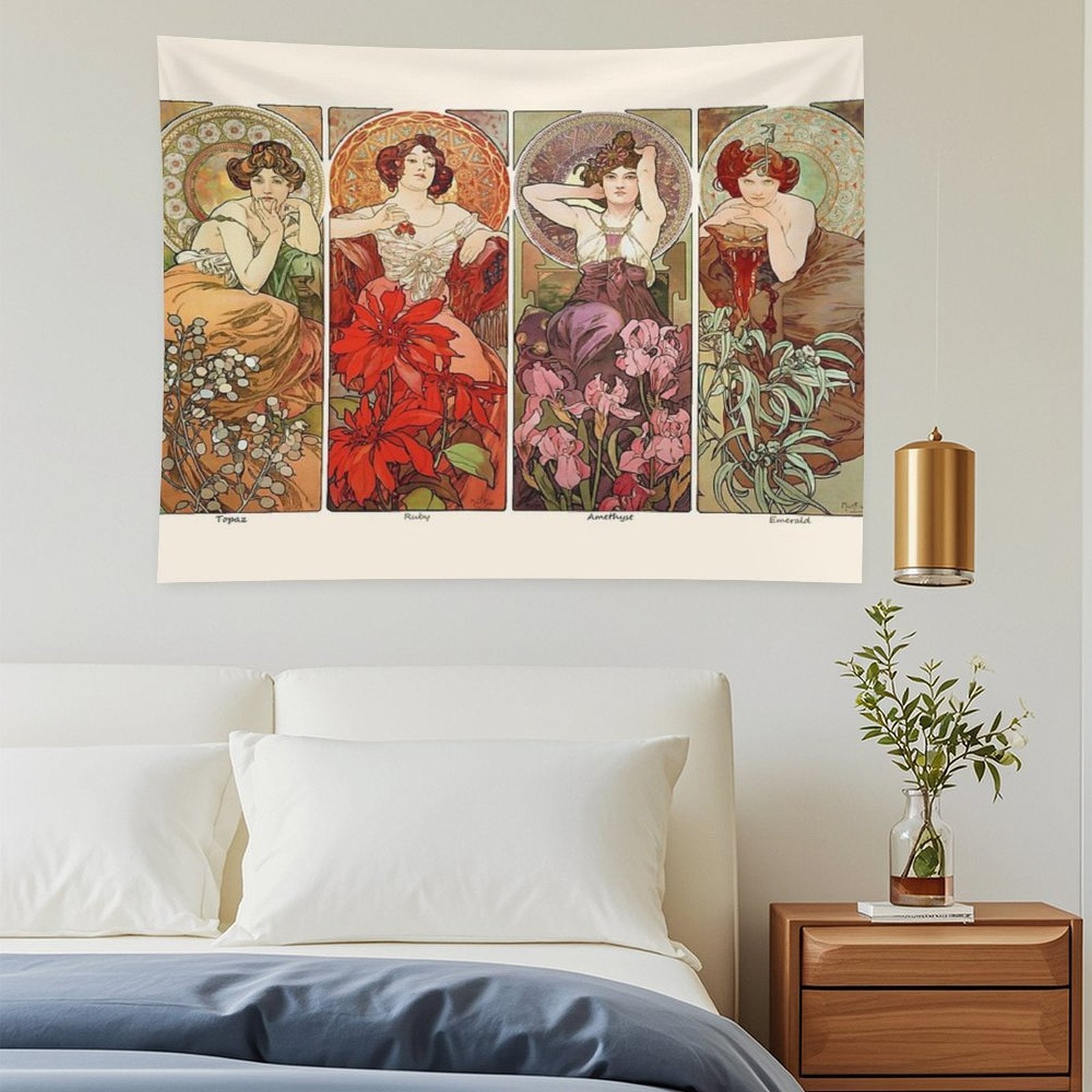 💓【MULTI-FUNCTION】 Used "The Precious Stones, by Alphonse Mucha. HIGH DEFINITION Tapestry" to decorate your bedroom, college dorm, room, living room, kitchen wall, can be used as tapestry or wall hanging, bedspread, tablecloth, dormitory decoration, beach shawl, tablecloth, etc.
