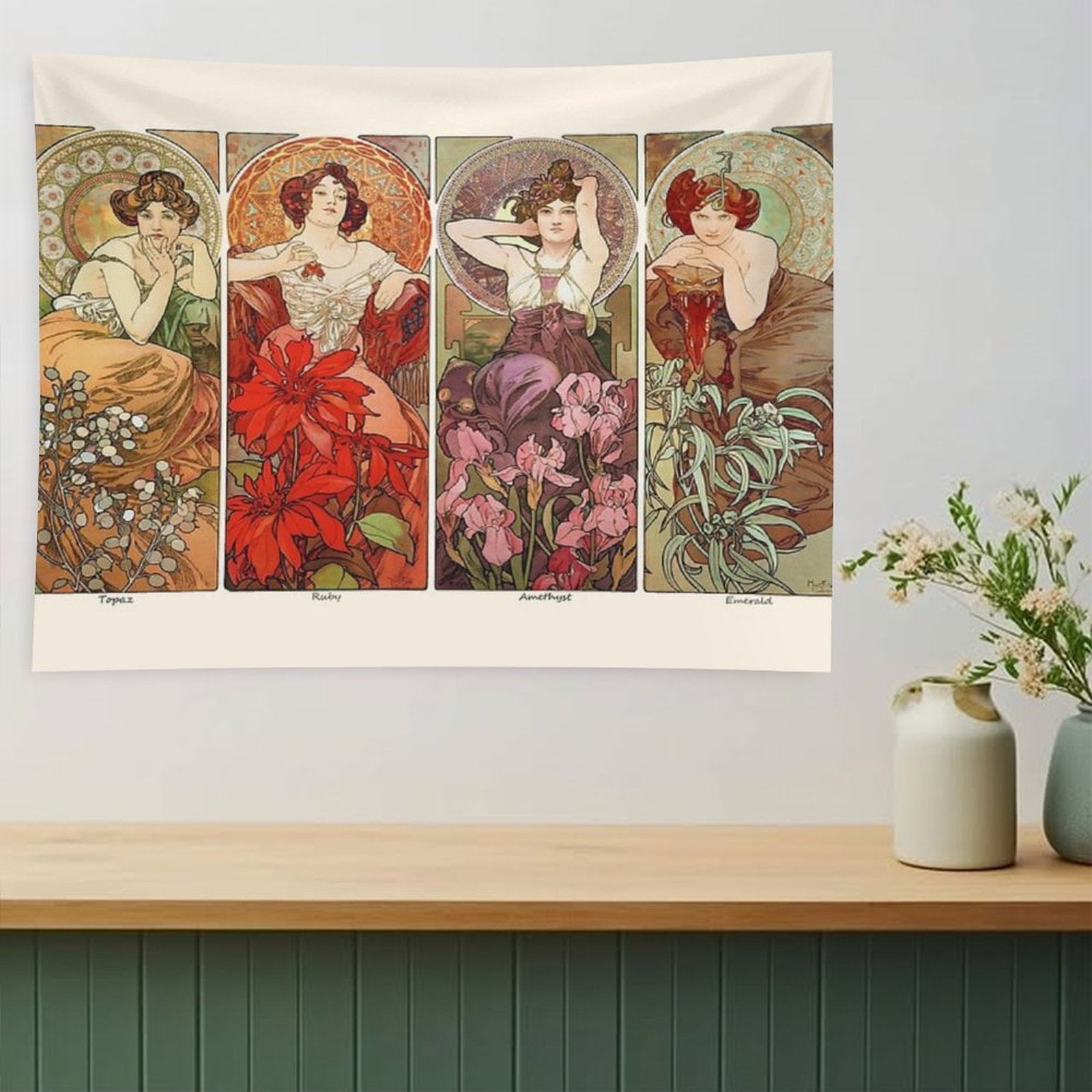 💝【Quality Material】"The Precious Stones, by Alphonse Mucha. HIGH DEFINITION Tapestry" made of 100% polyester, bright colors, durable, lightweight, skin-friendly, soft texture, easy to hang or pack.